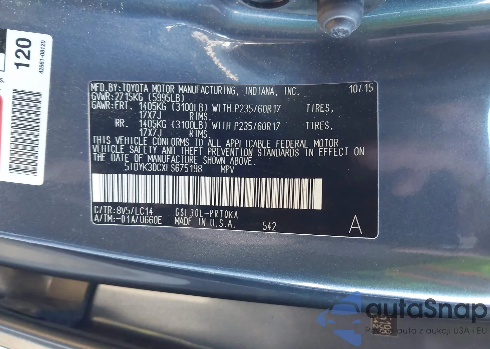 Samochód Toyota Sienna 2015 (VIN 5TDYK3DCXFS675198) sprzedaje go niezweryfikowany sprzedawca. Zalecamy raport Carfax i potwierdzenie możliwości rejestracji pojazdu przed zakupem.