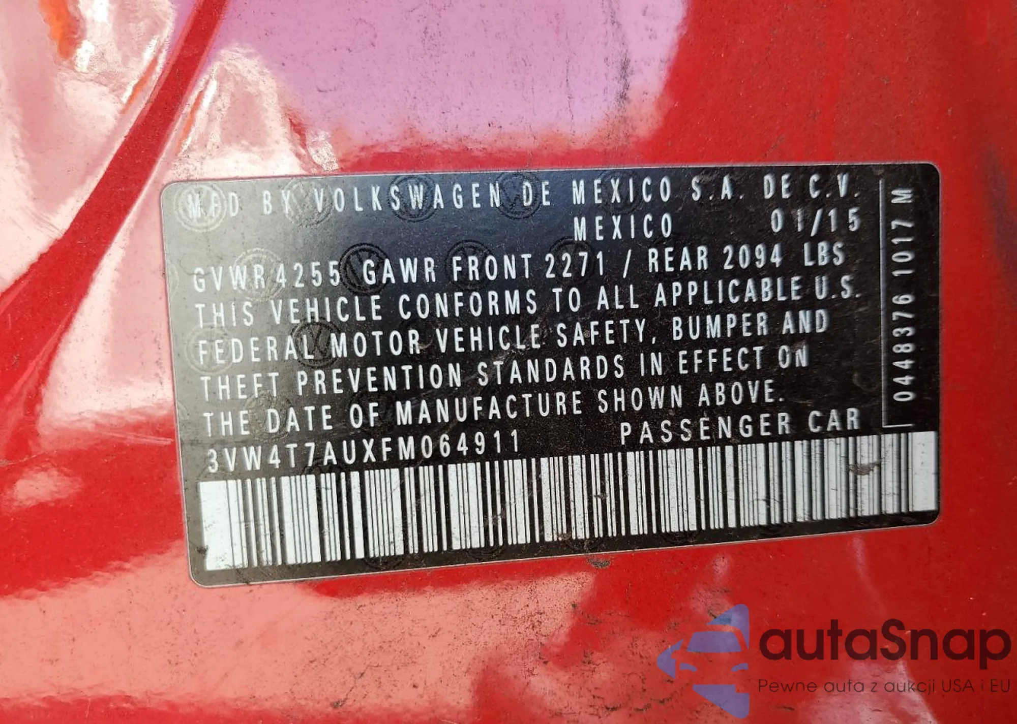 VIN: 3VW4T7AUXFM064911