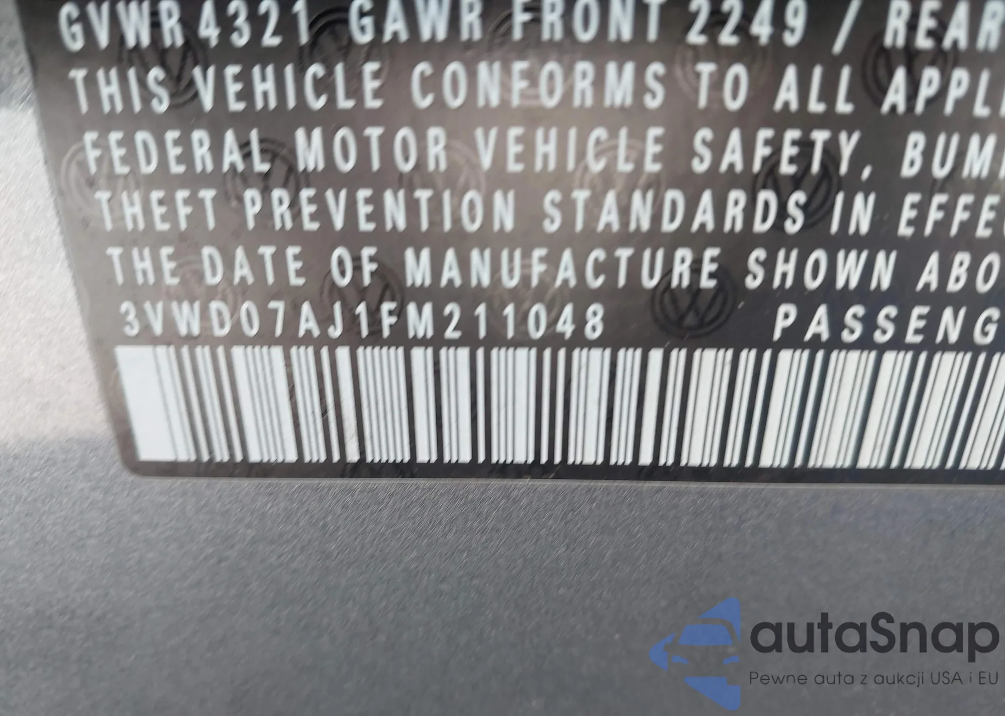 VIN: 3VWD07AJ1FM211048