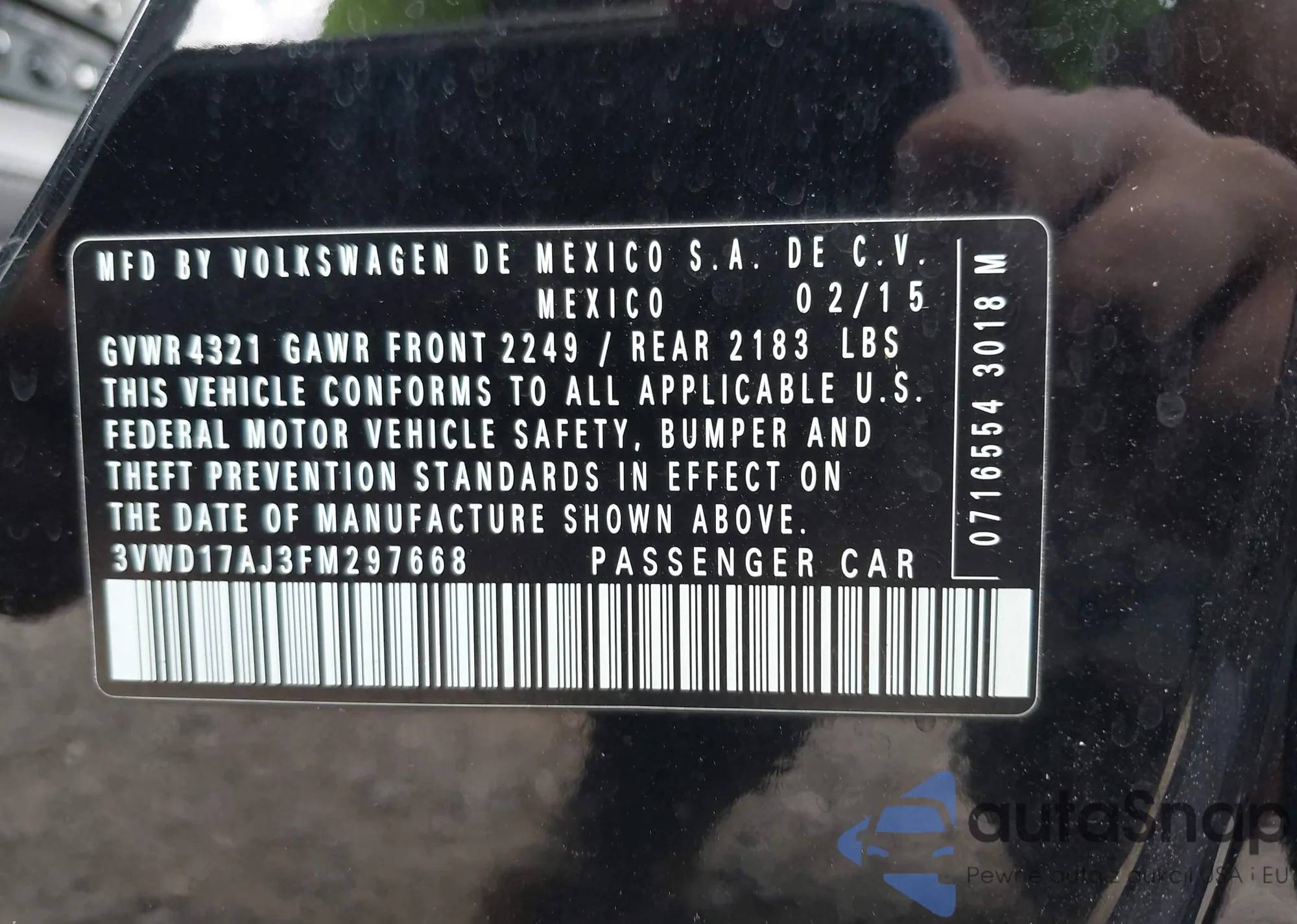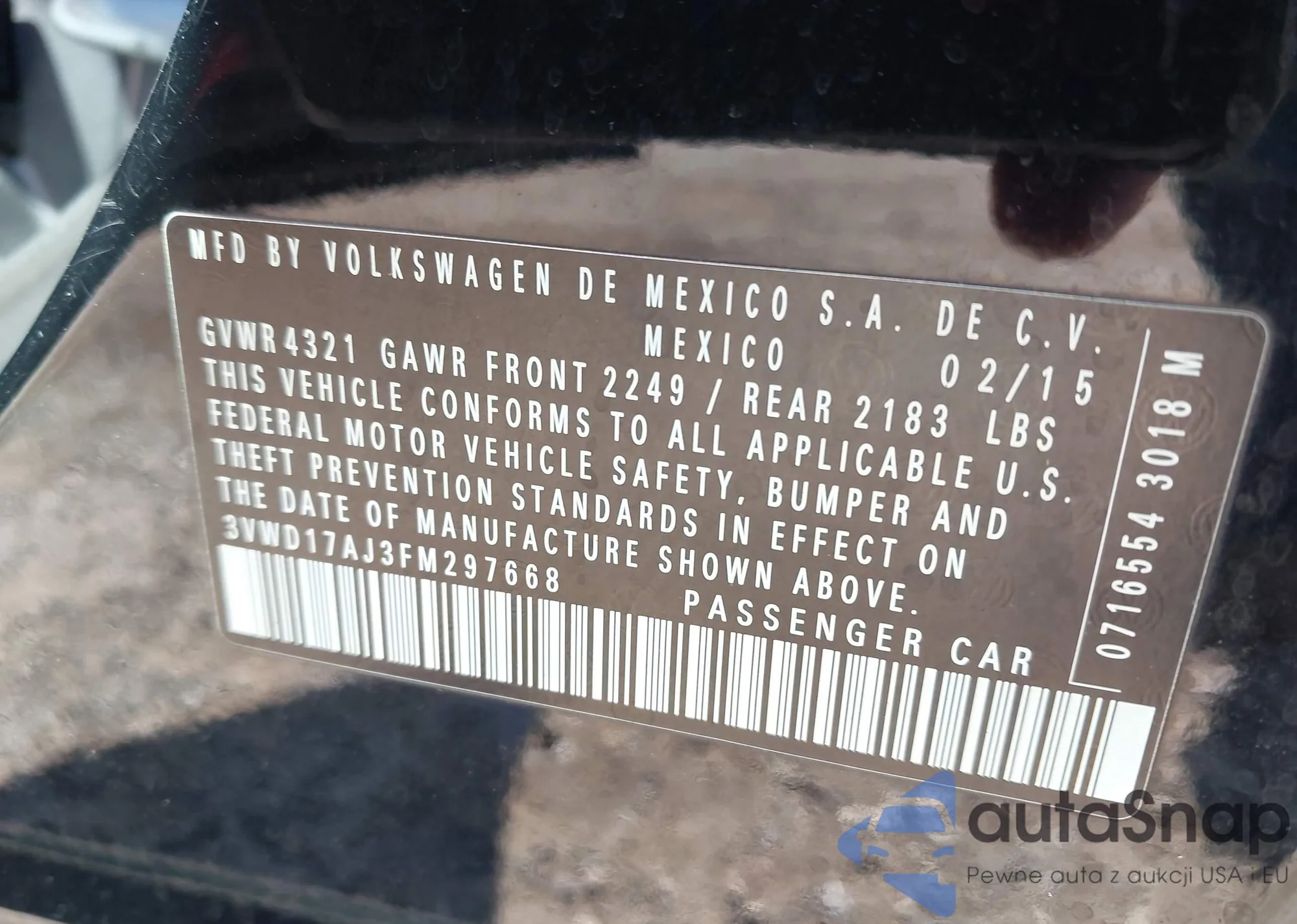 VIN: 3VWD17AJ3FM297668