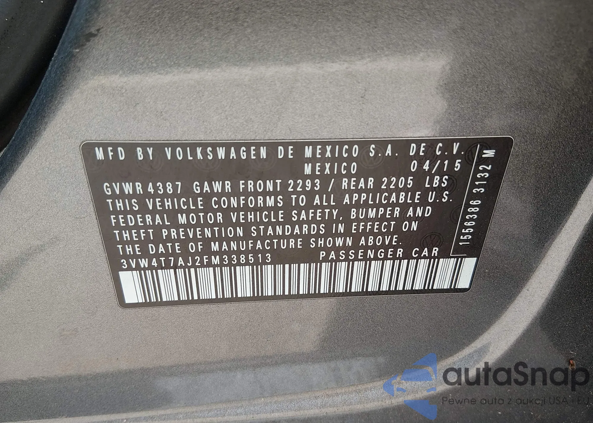 VIN: 3VW4T7AJ2FM338513