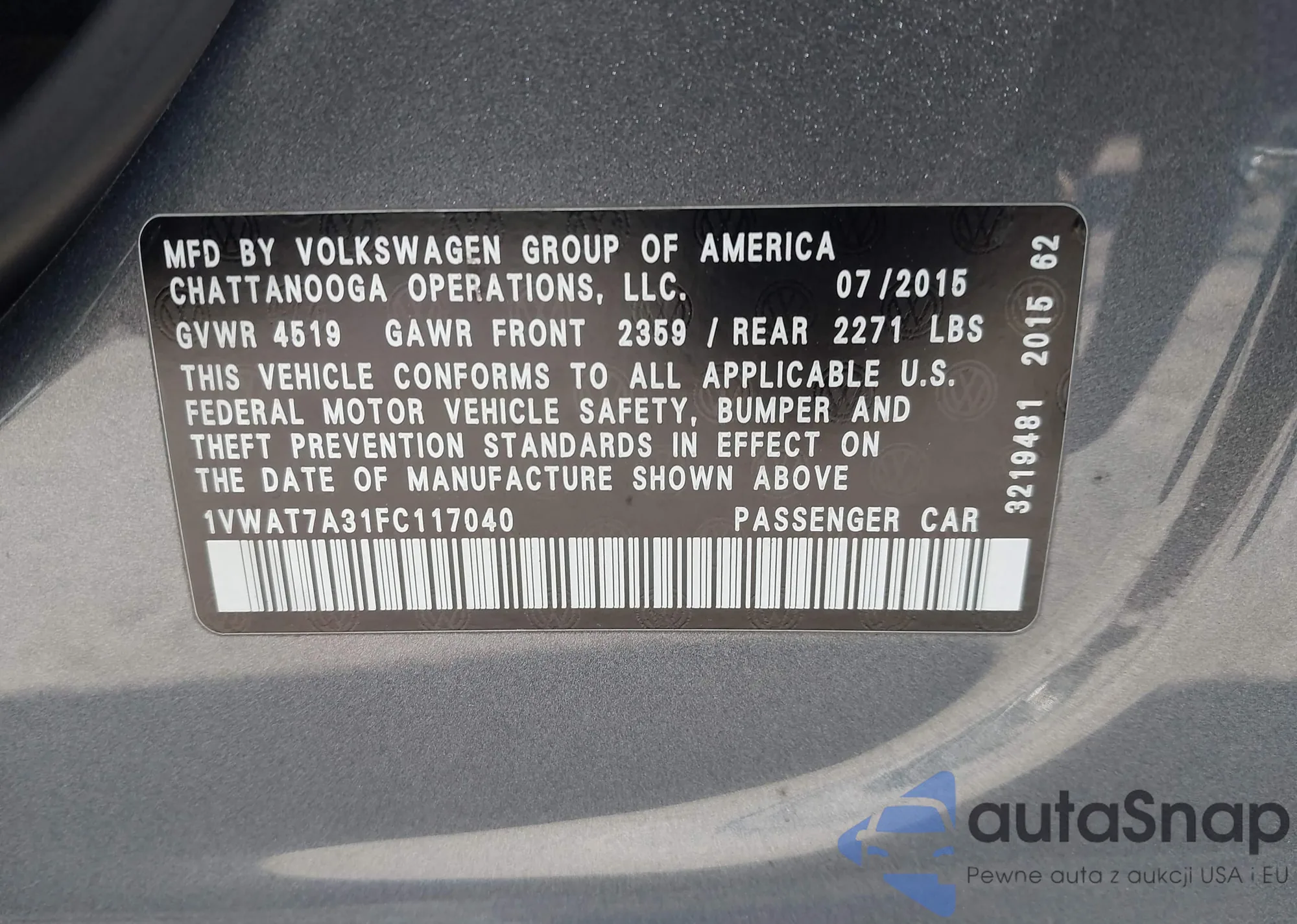 VIN: 1VWAT7A31FC117040