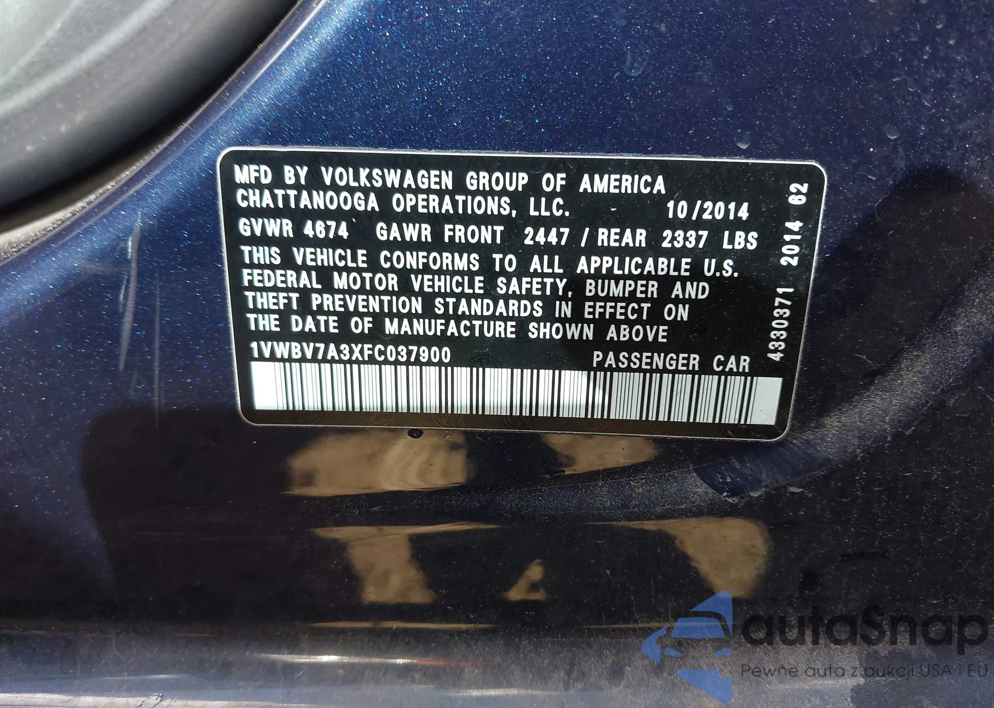 VIN: 1VWBV7A3XFC037900