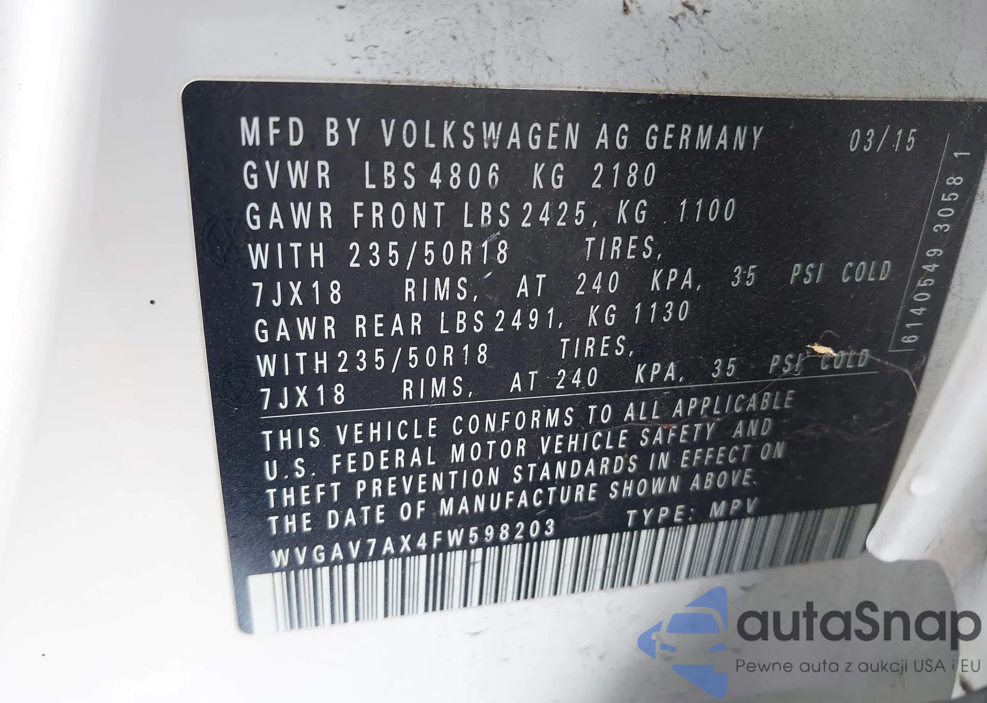 VIN: WVGAV7AX4FW598203