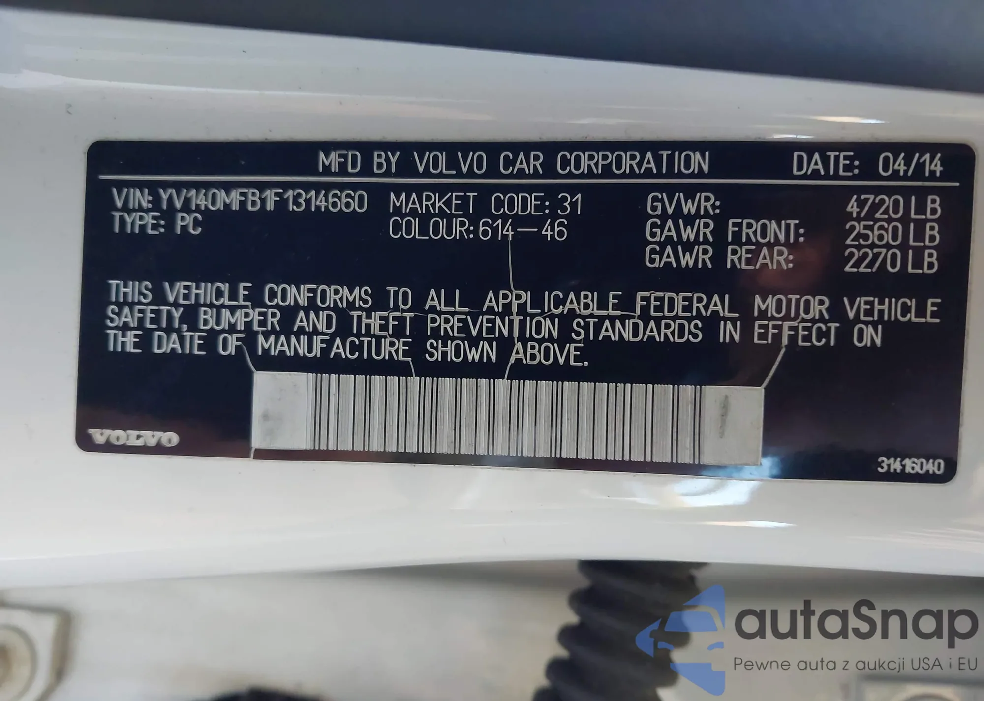 VIN: YV140MFB1F1314660