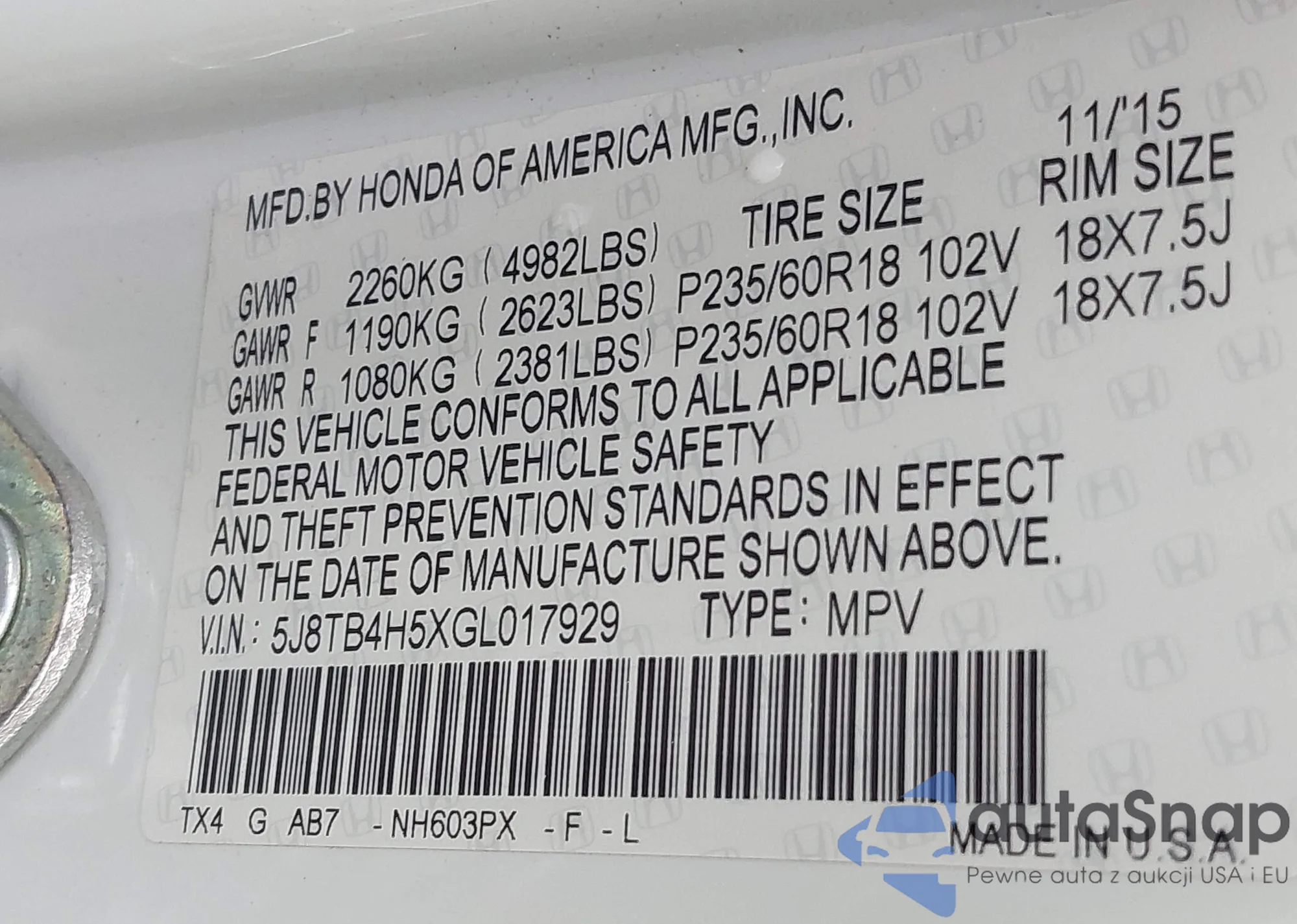 VIN: 5J8TB4H5XGL017929