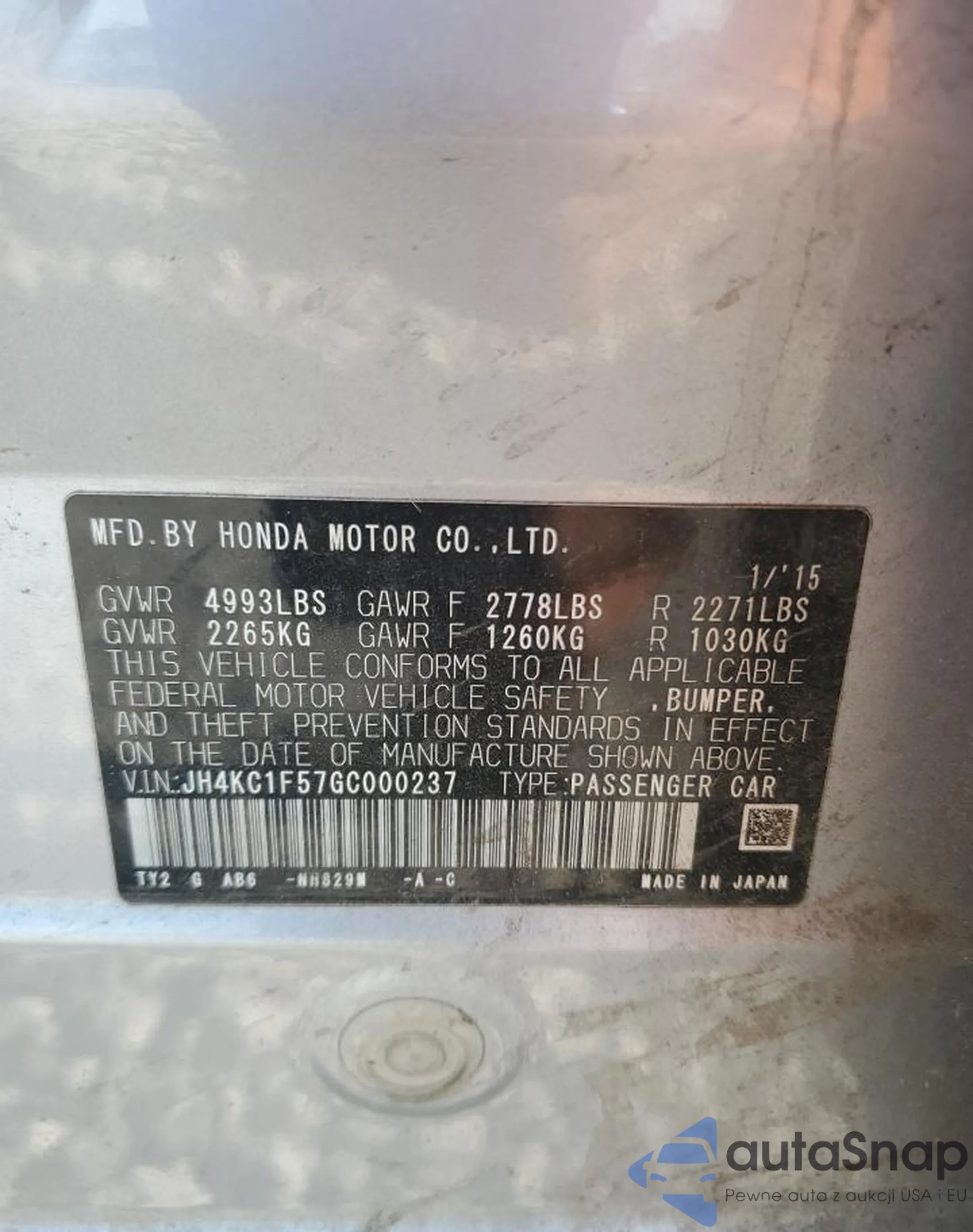 VIN: JH4KC1F57GC000237