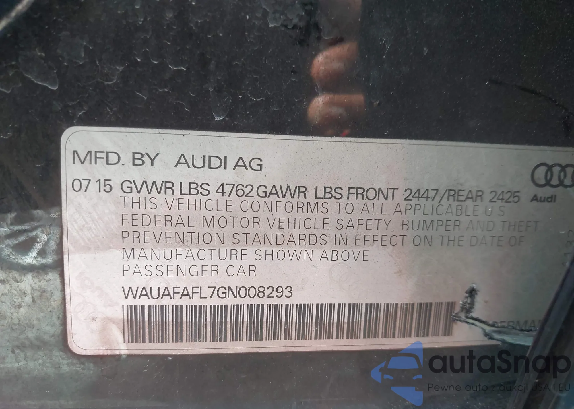 VIN: WAUAFAFL7GN008293