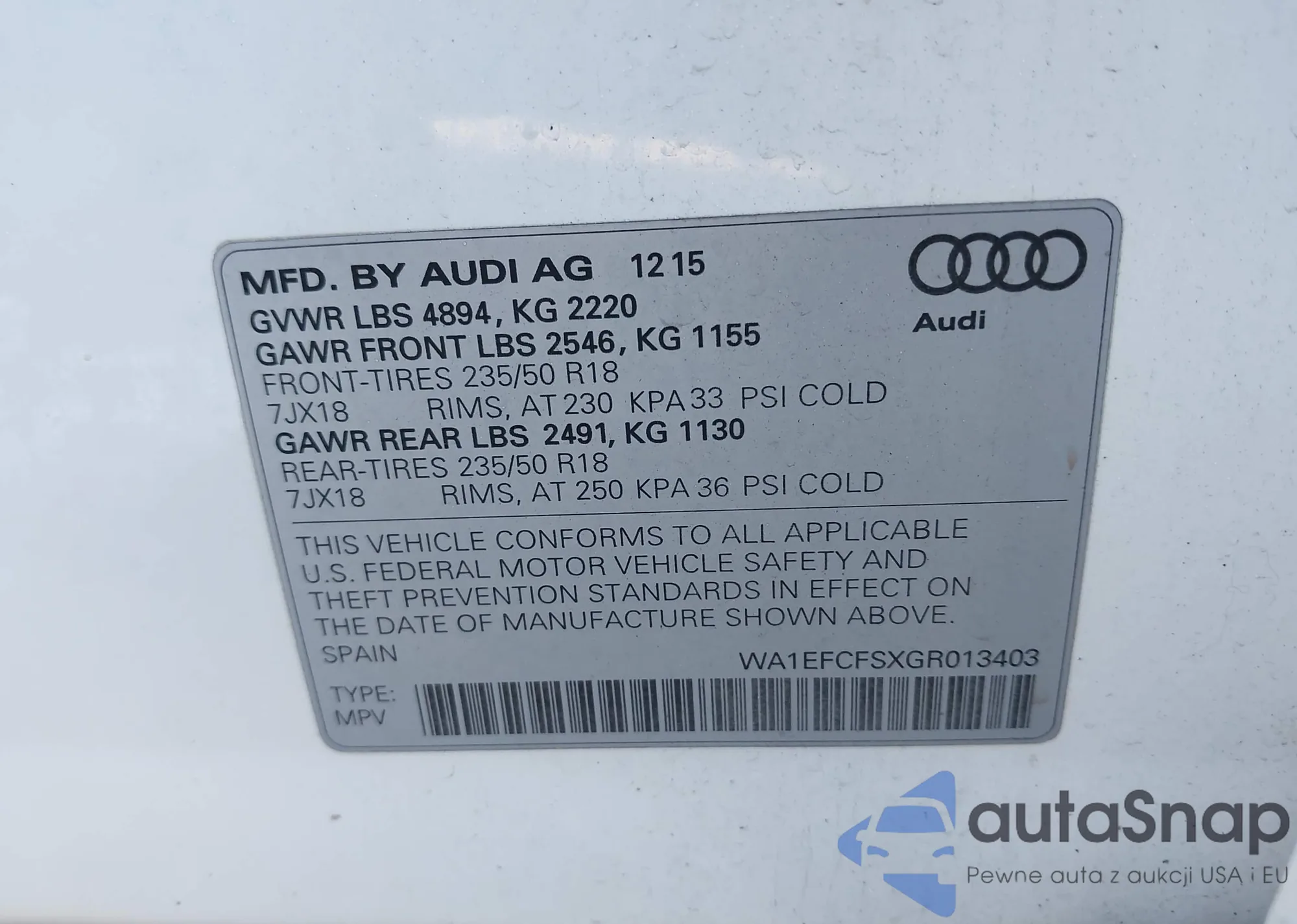 VIN: WA1EFCFSXGR013403