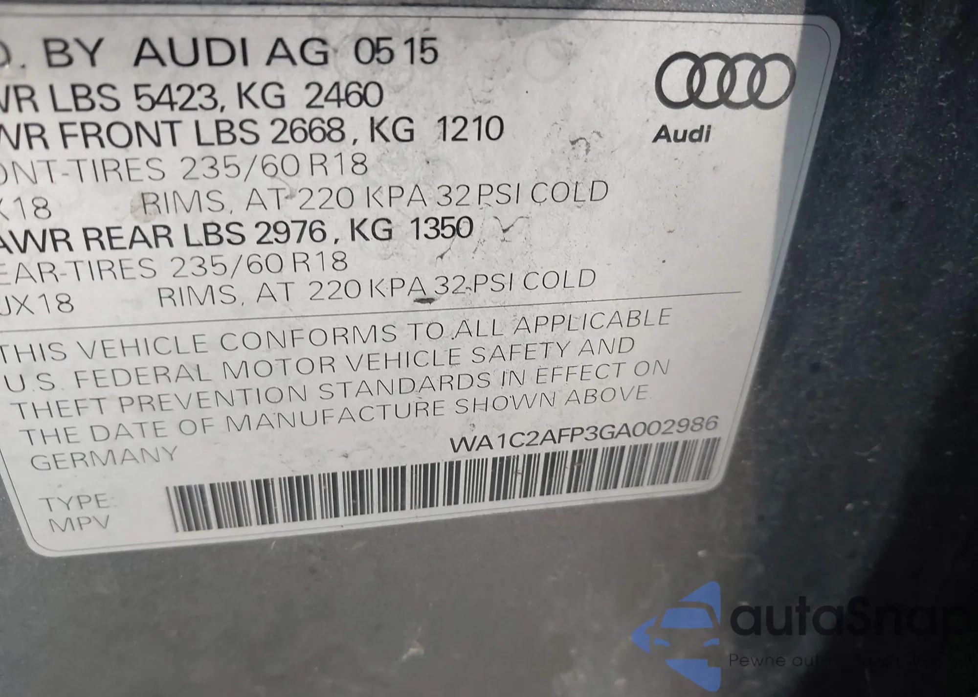 VIN: WA1C2AFP3GA002986