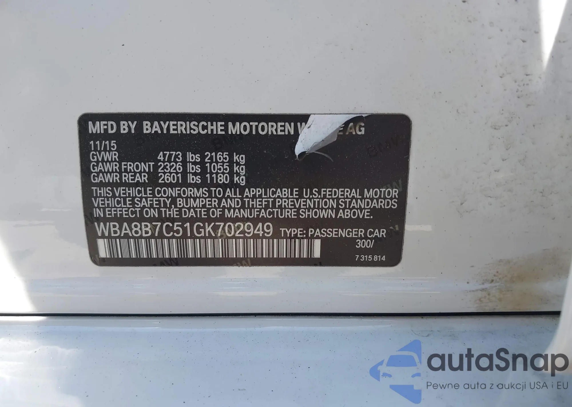 VIN: WBA8B7C51GK702949