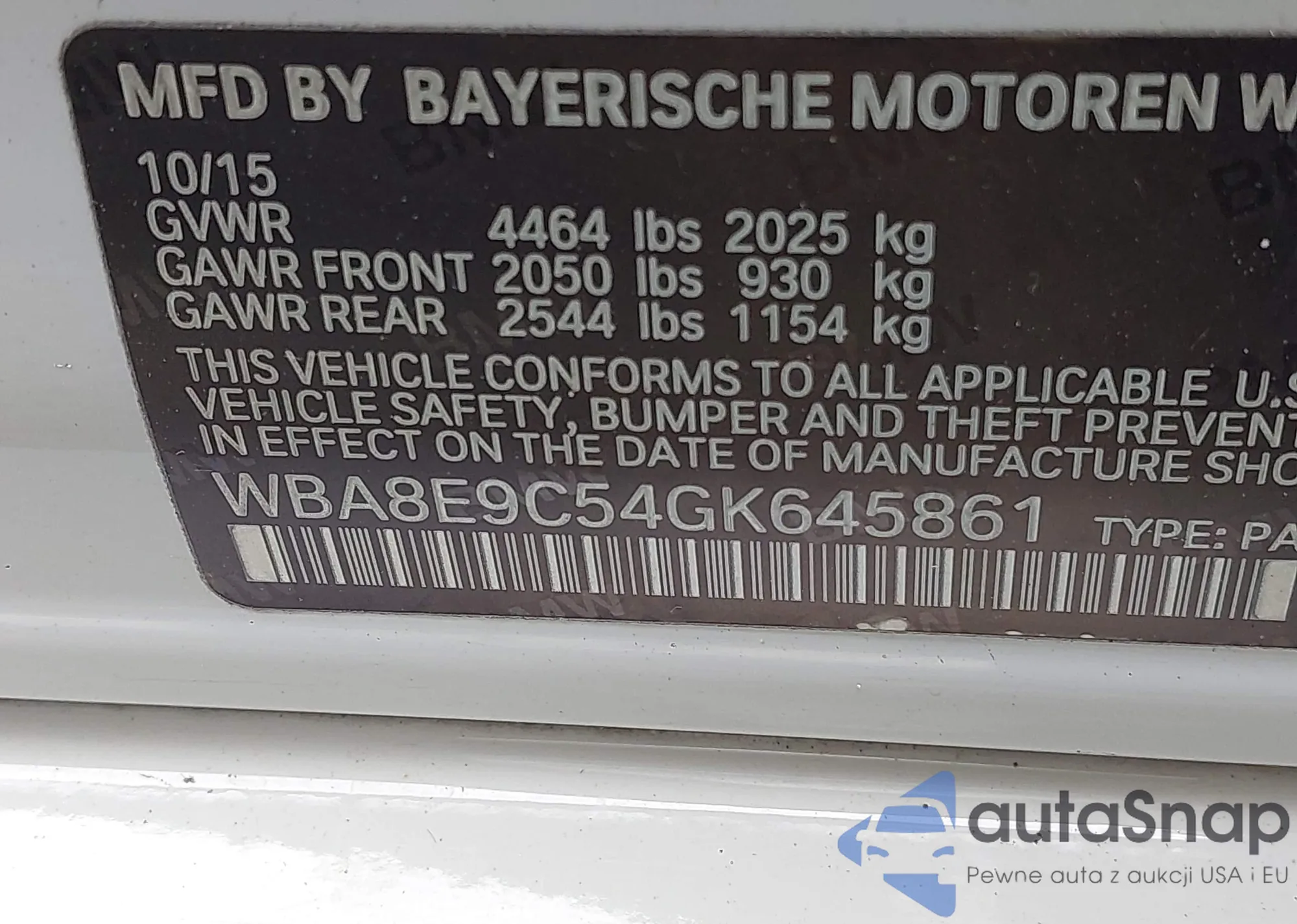 VIN: WBA8E9C54GK645861
