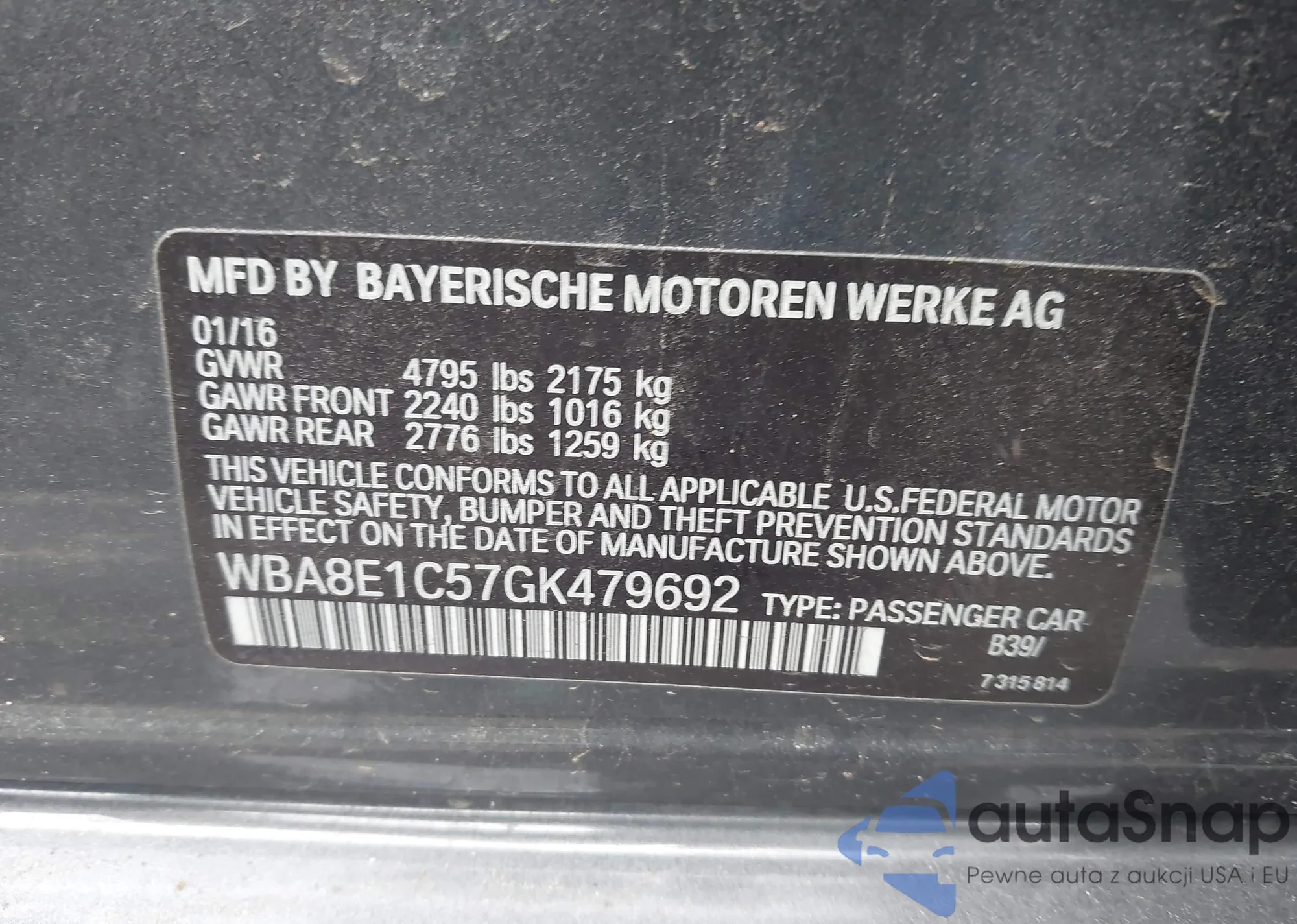 VIN: WBA8E1C57GK479692