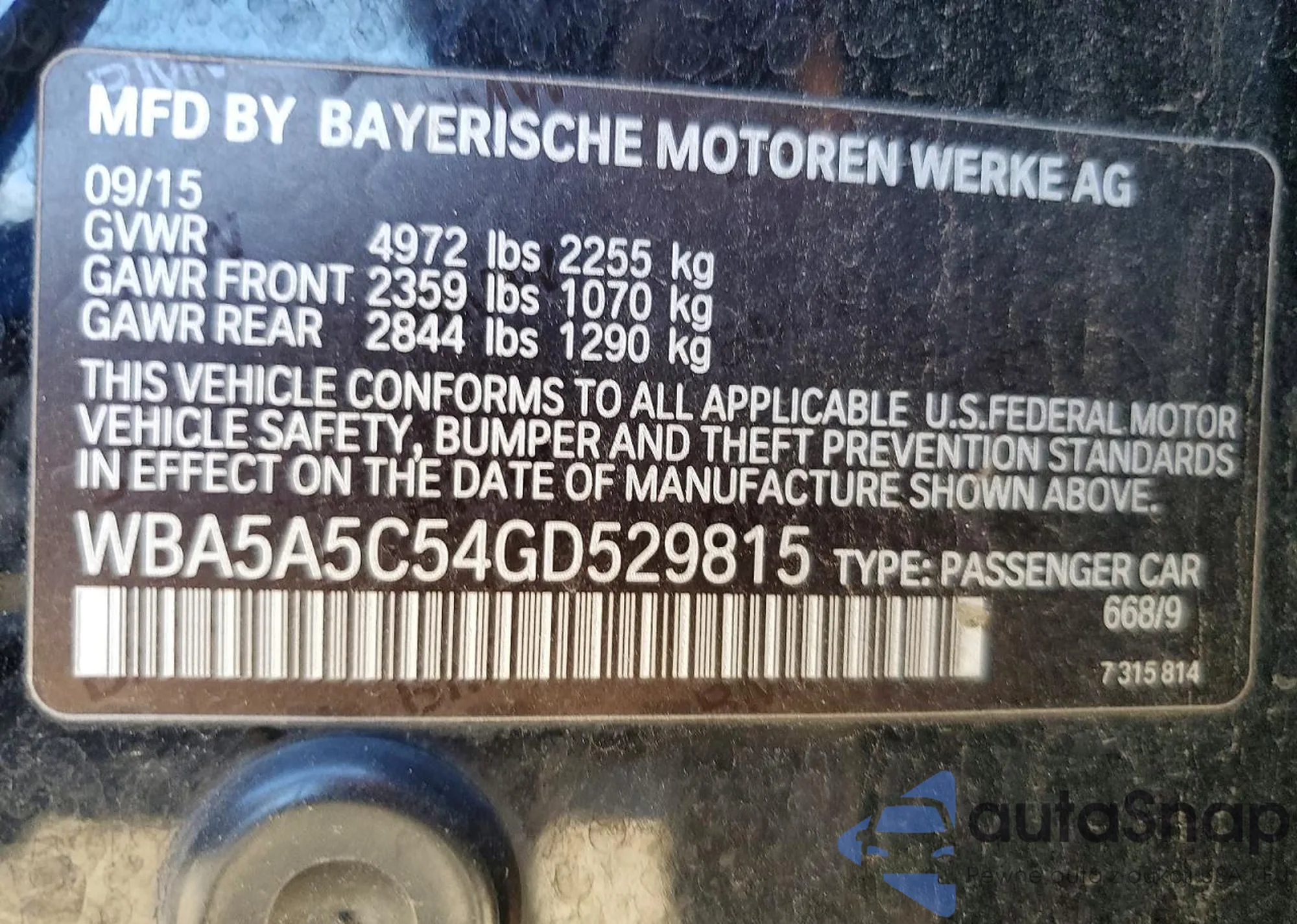 • VIN: WBA5A5C54GD529815