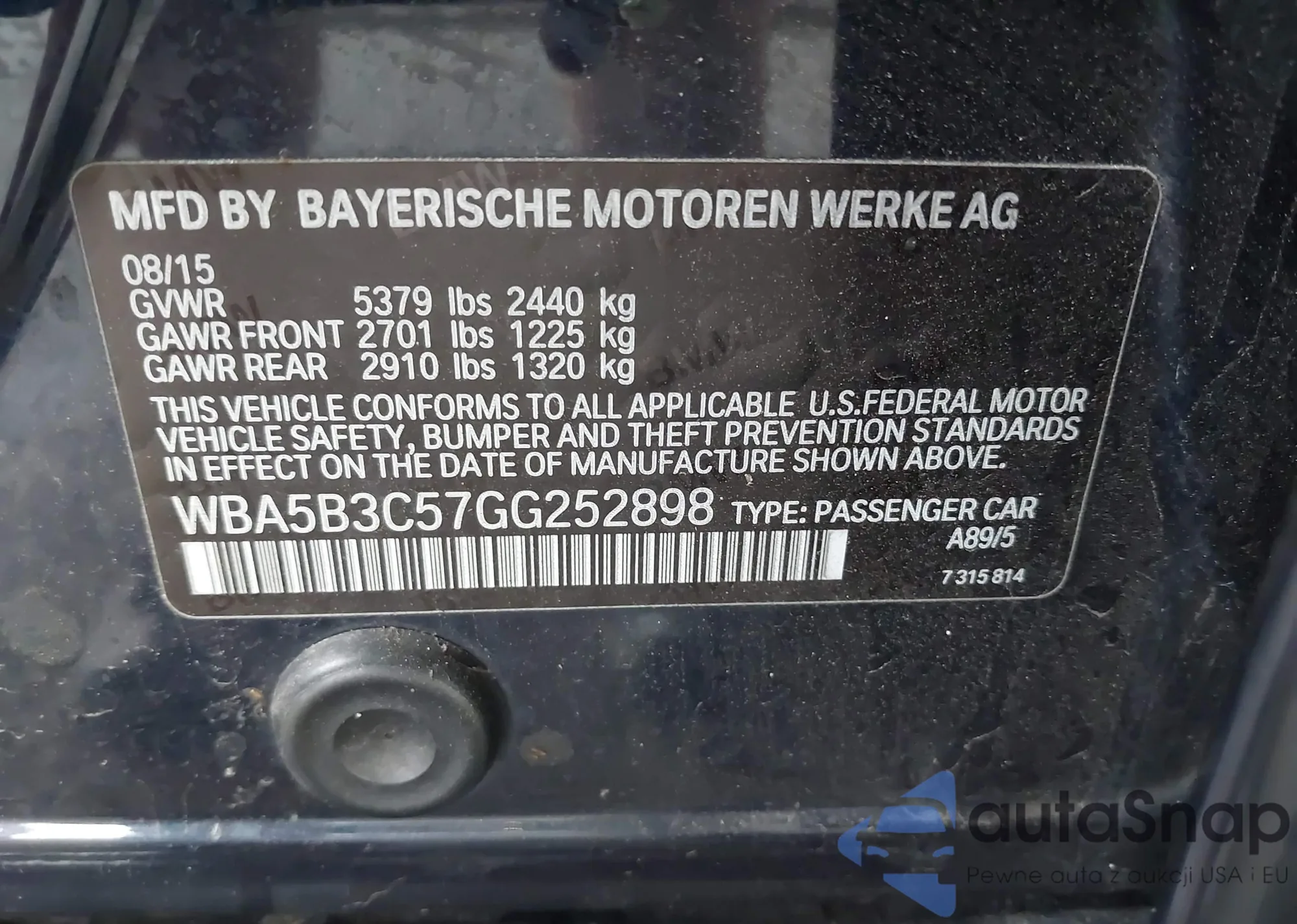 VIN: WBA5B3C57GG252898
