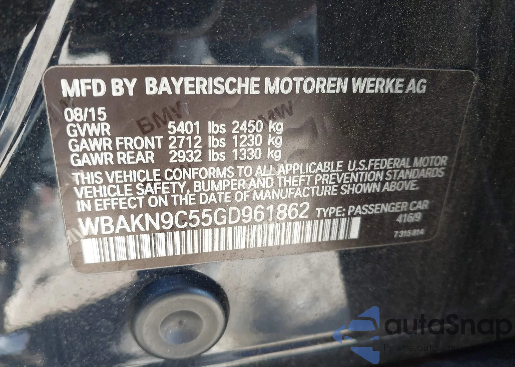 Samochód BMW 5er 2016 (VIN WBAKN9C55GD961862) nie był wcześniej licytowany. Dokumenty są czyste, przebieg odpowiada lub jest niższy niż średnia rynku. Sprzedaje go firma ubezpieczeniowa – polecamy zakup. Dostawa do portu zajmie ok. 6–8 tygodni.