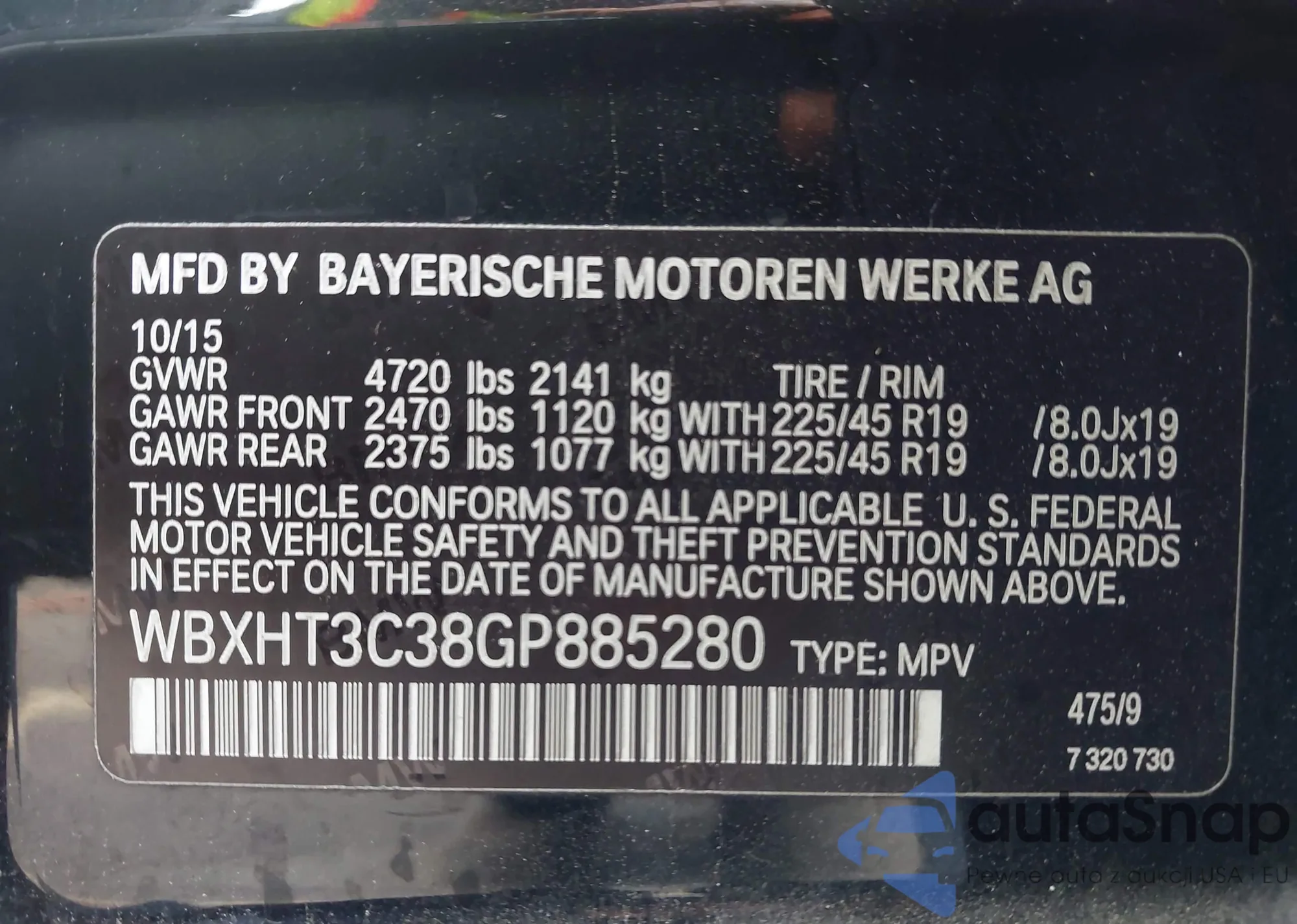 • VIN: WBXHT3C38GP885280