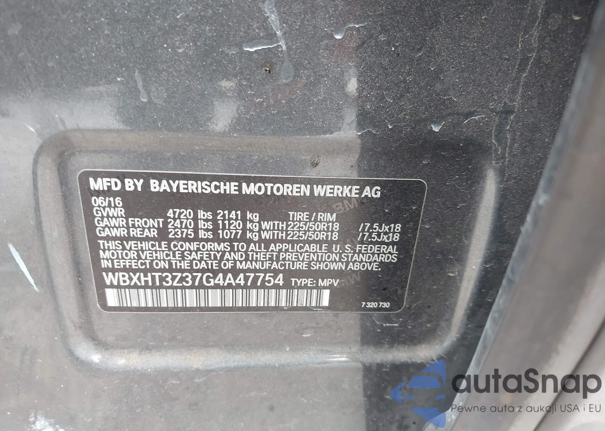 Samochód BMW X1 2016 (VIN WBXHT3Z37G4A47754) nie był wcześniej licytowany. Dokumenty są czyste, przebieg odpowiada lub jest niższy niż średnia rynku. Sprzedaje go firma ubezpieczeniowa – polecamy zakup. Dostawa do portu zajmie ok. 6–8 tygodni.