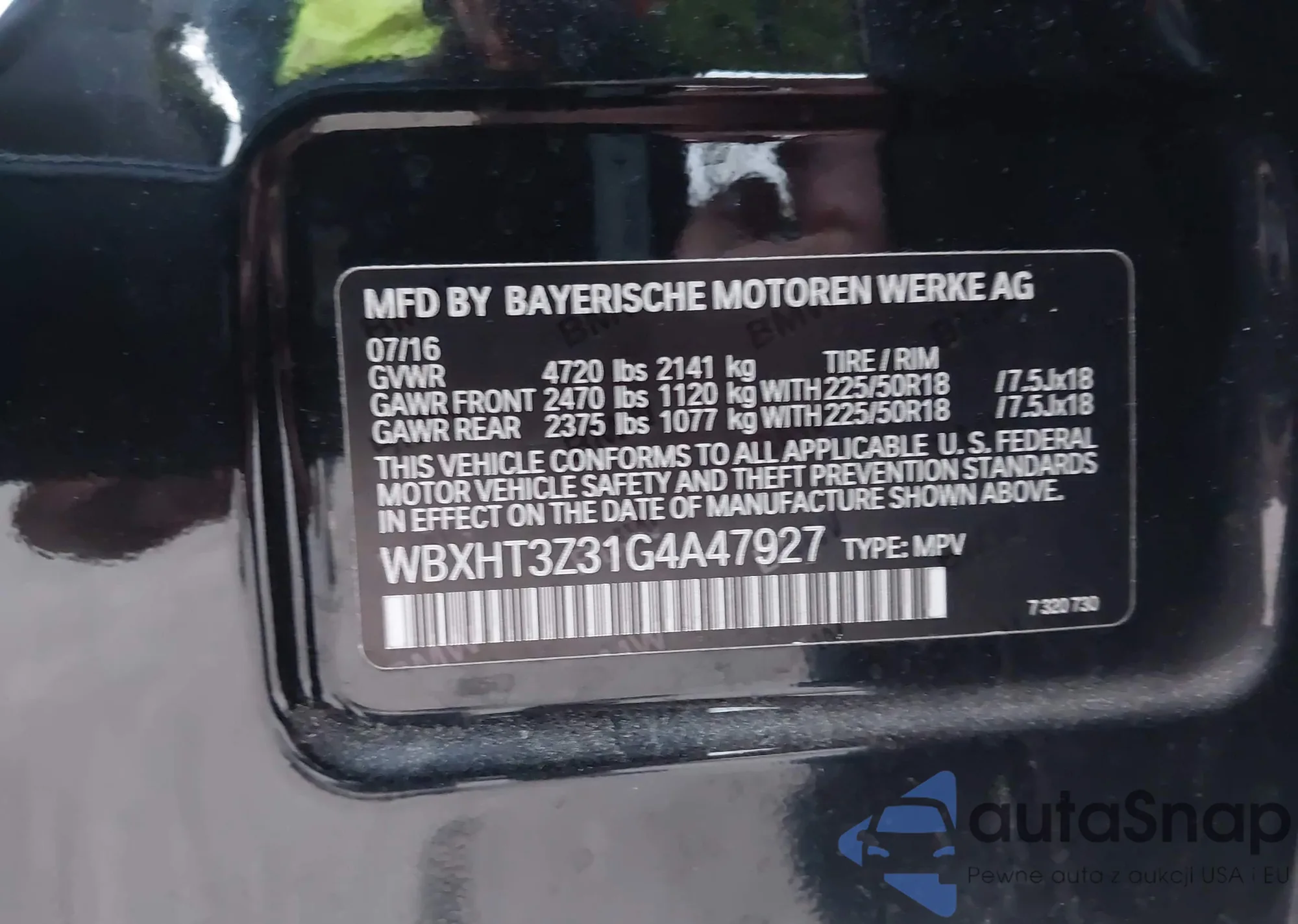 Samochód BMW X1 2016 (VIN WBXHT3Z31G4A47927) nie był wcześniej licytowany. Dokumenty są czyste, przebieg odpowiada lub jest niższy niż średnia rynku. Sprzedaje go firma ubezpieczeniowa – polecamy zakup. Dostawa do portu zajmie ok. 6–8 tygodni.