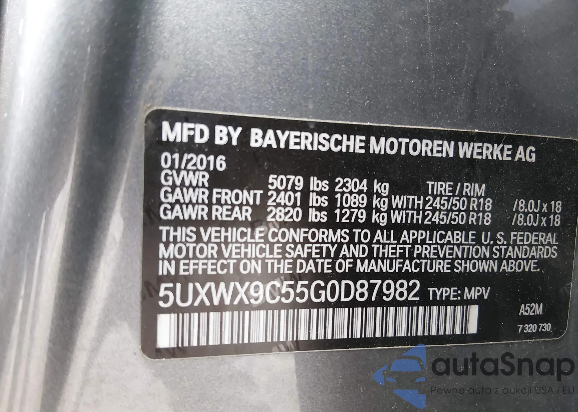 Samochód BMW X3 2016 (VIN 5UXWX9C55G0D87982) sprzedaje go niezweryfikowany sprzedawca. Zalecamy raport Carfax i potwierdzenie możliwości rejestracji pojazdu przed zakupem.