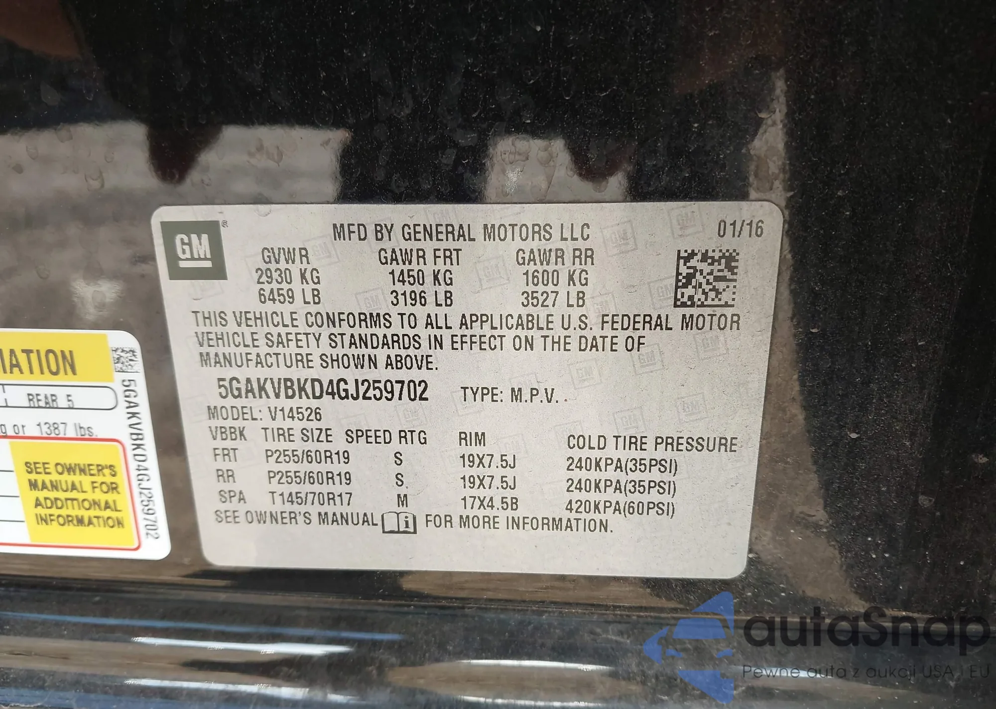 • VIN: 5GAKVBKD4GJ259702