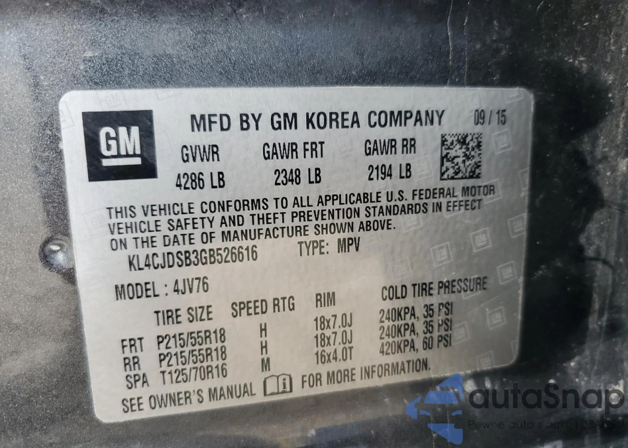 • VIN: KL4CJDSB3GB526616