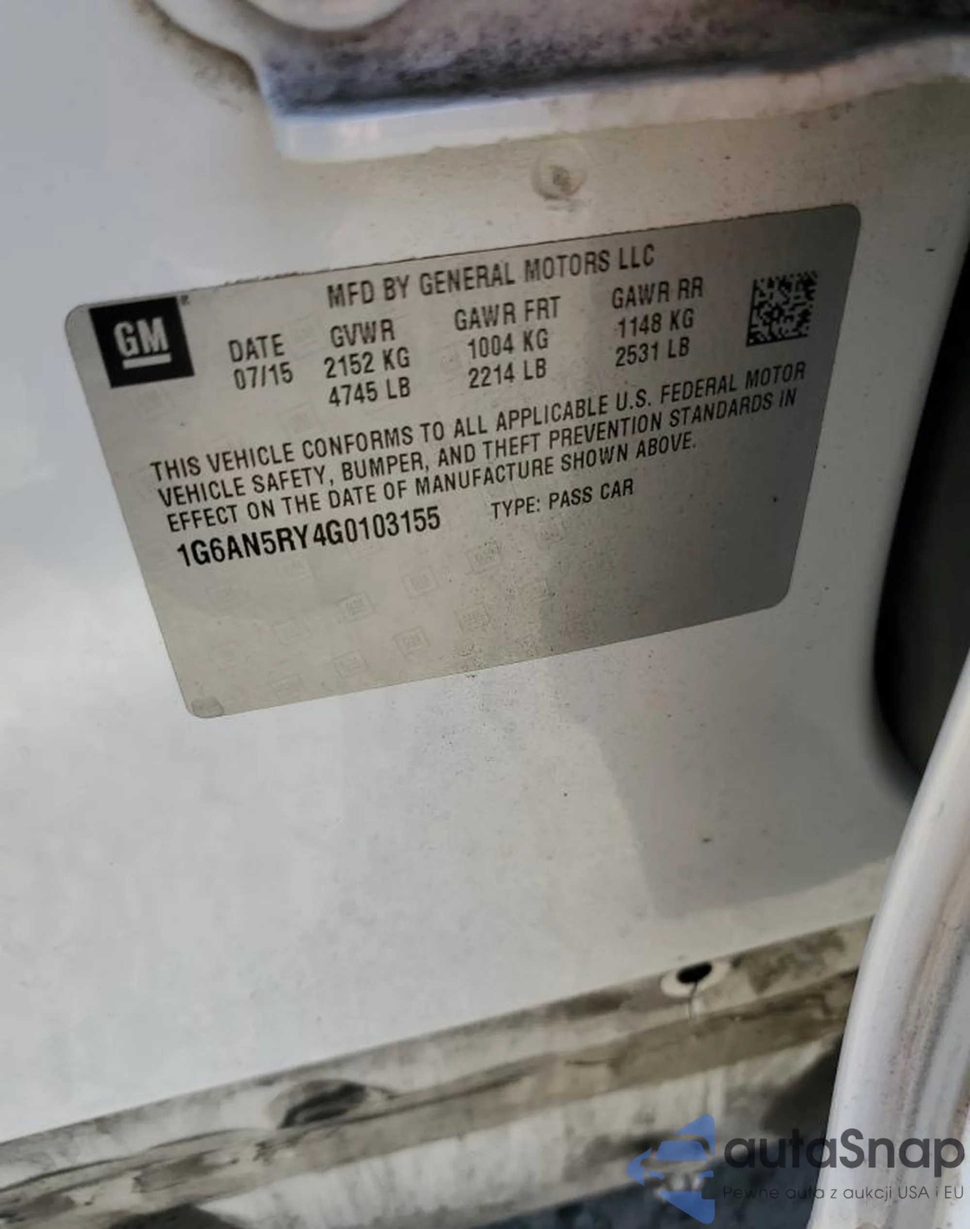 VIN: 1G6AN5RY4G0103155