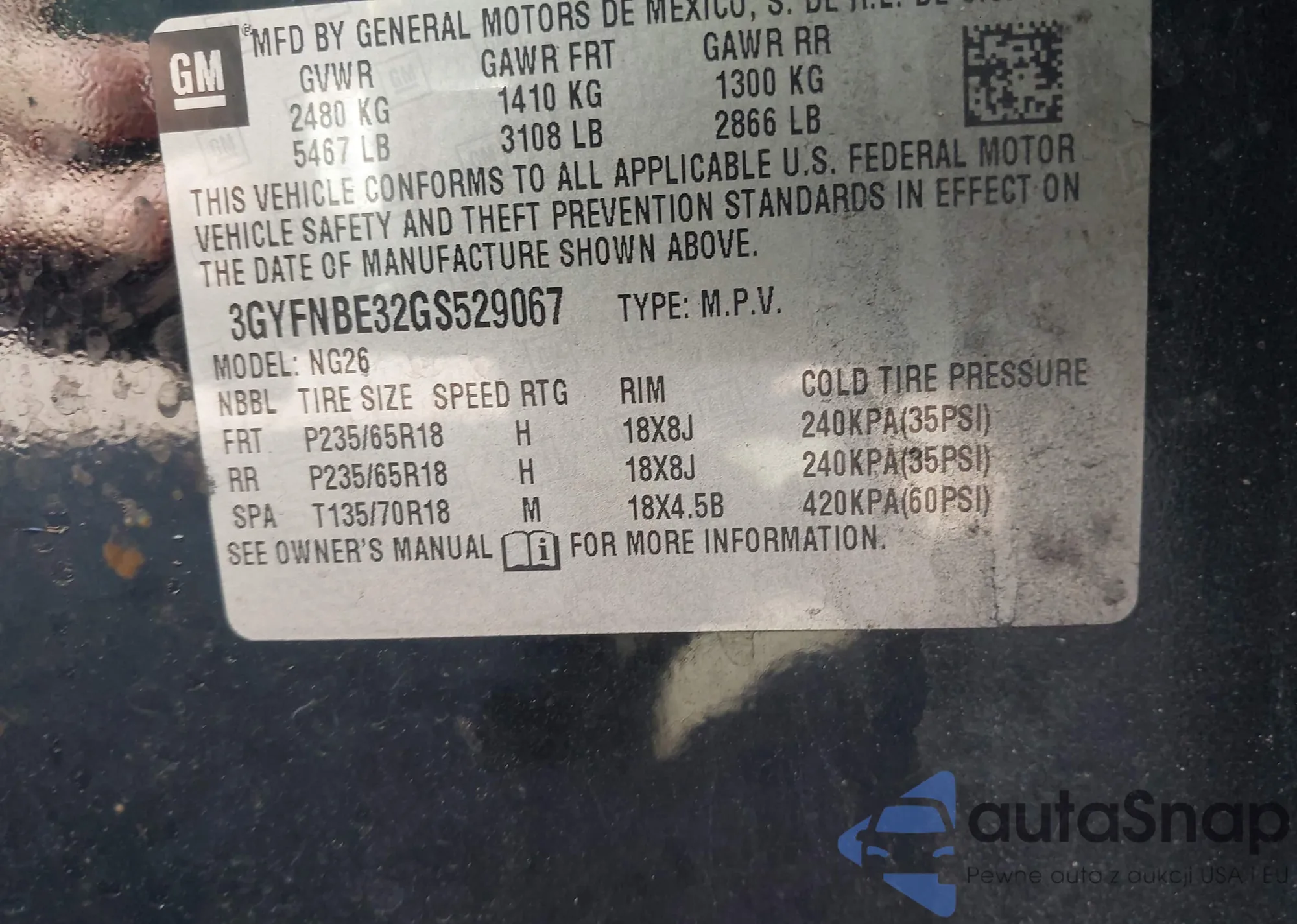 VIN: 3GYFNBE32GS529067