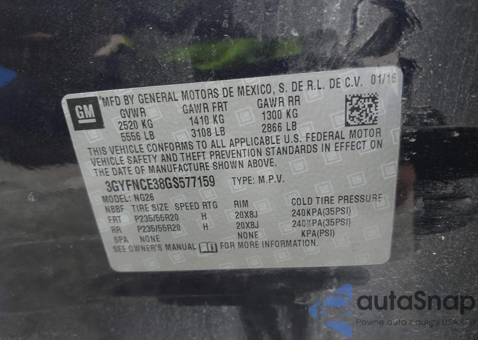 VIN: 3GYFNCE38GS577159