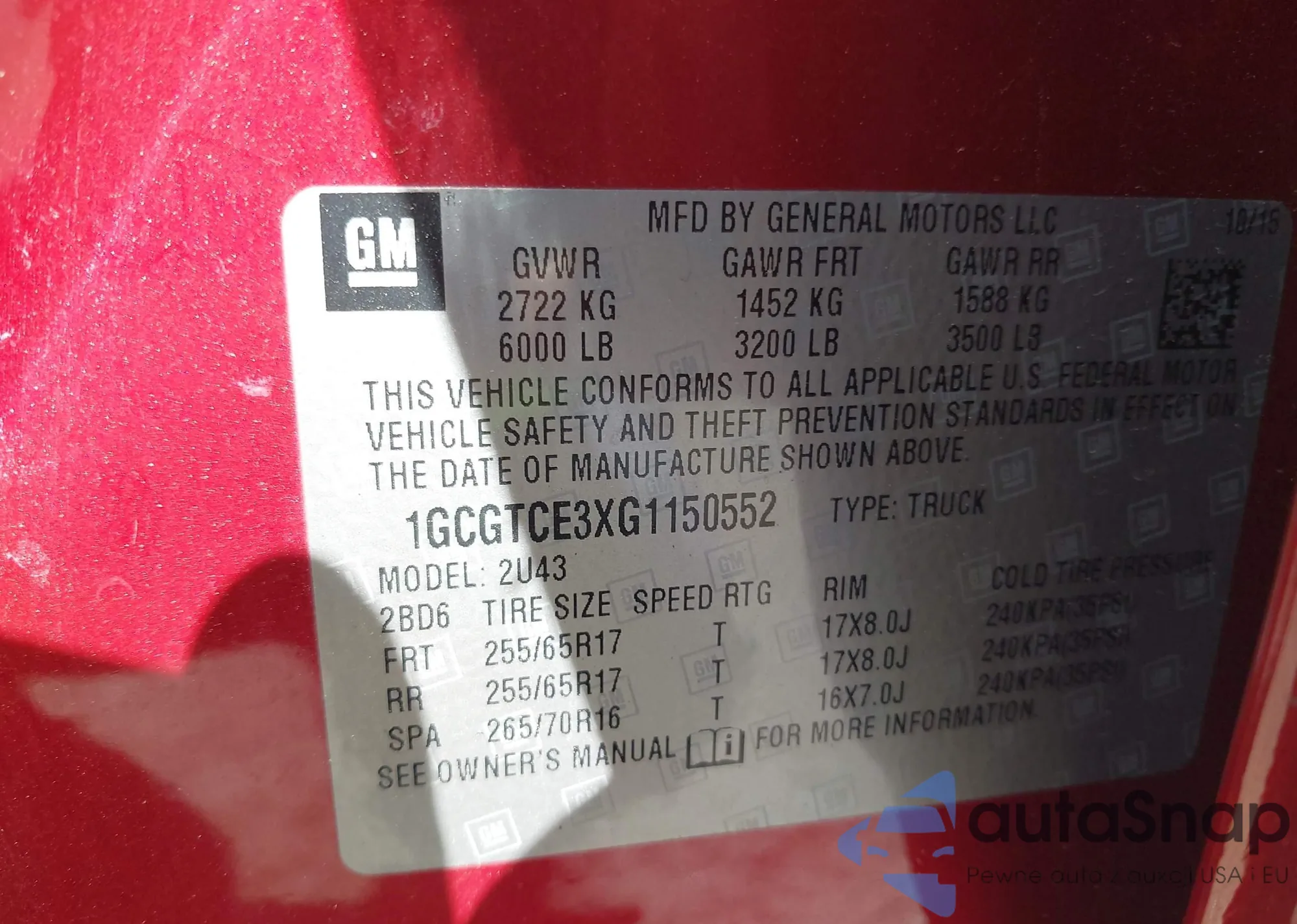 VIN: 1GCGTCE3XG1150552