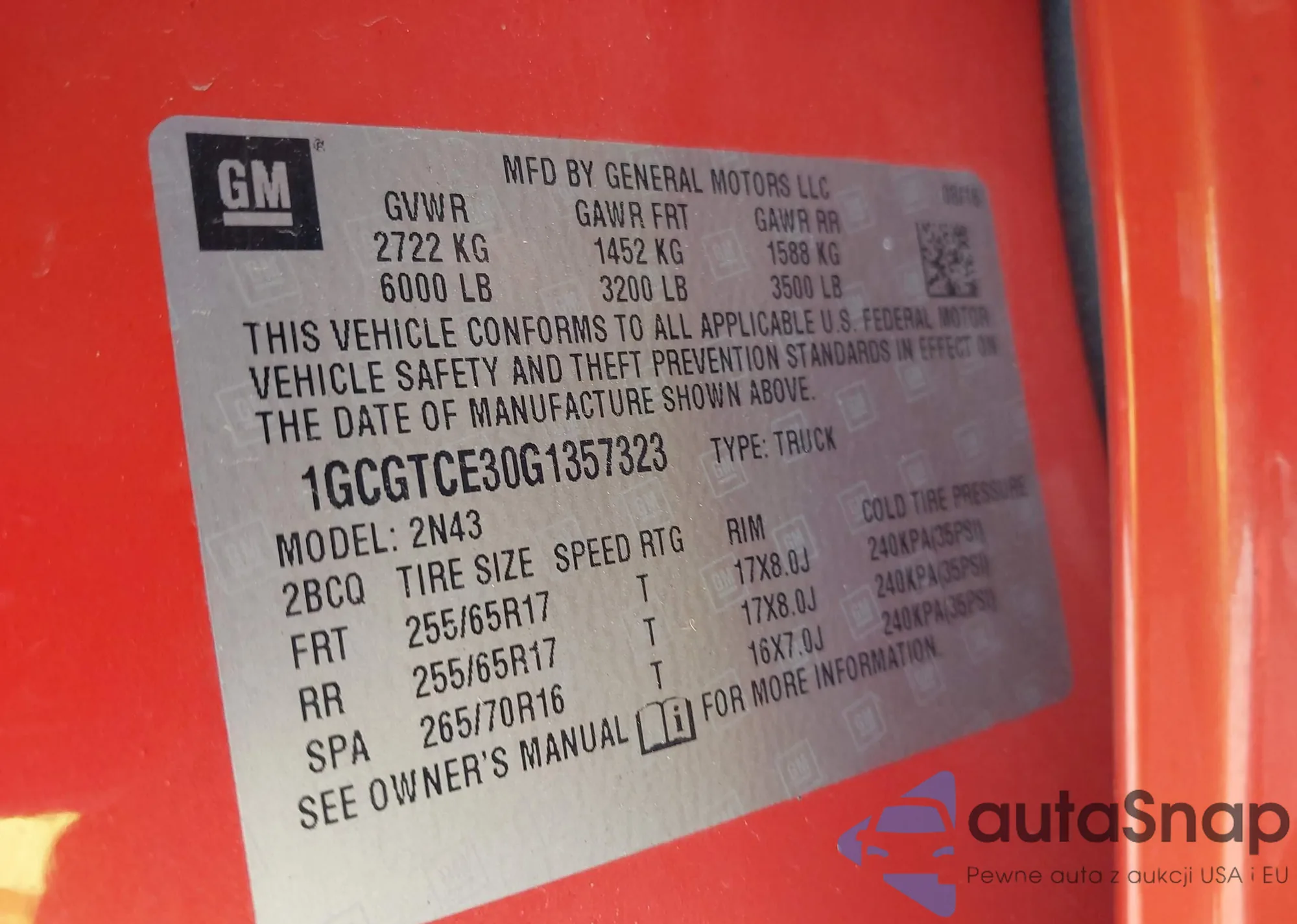 VIN: 1GCGTCE30G1357323