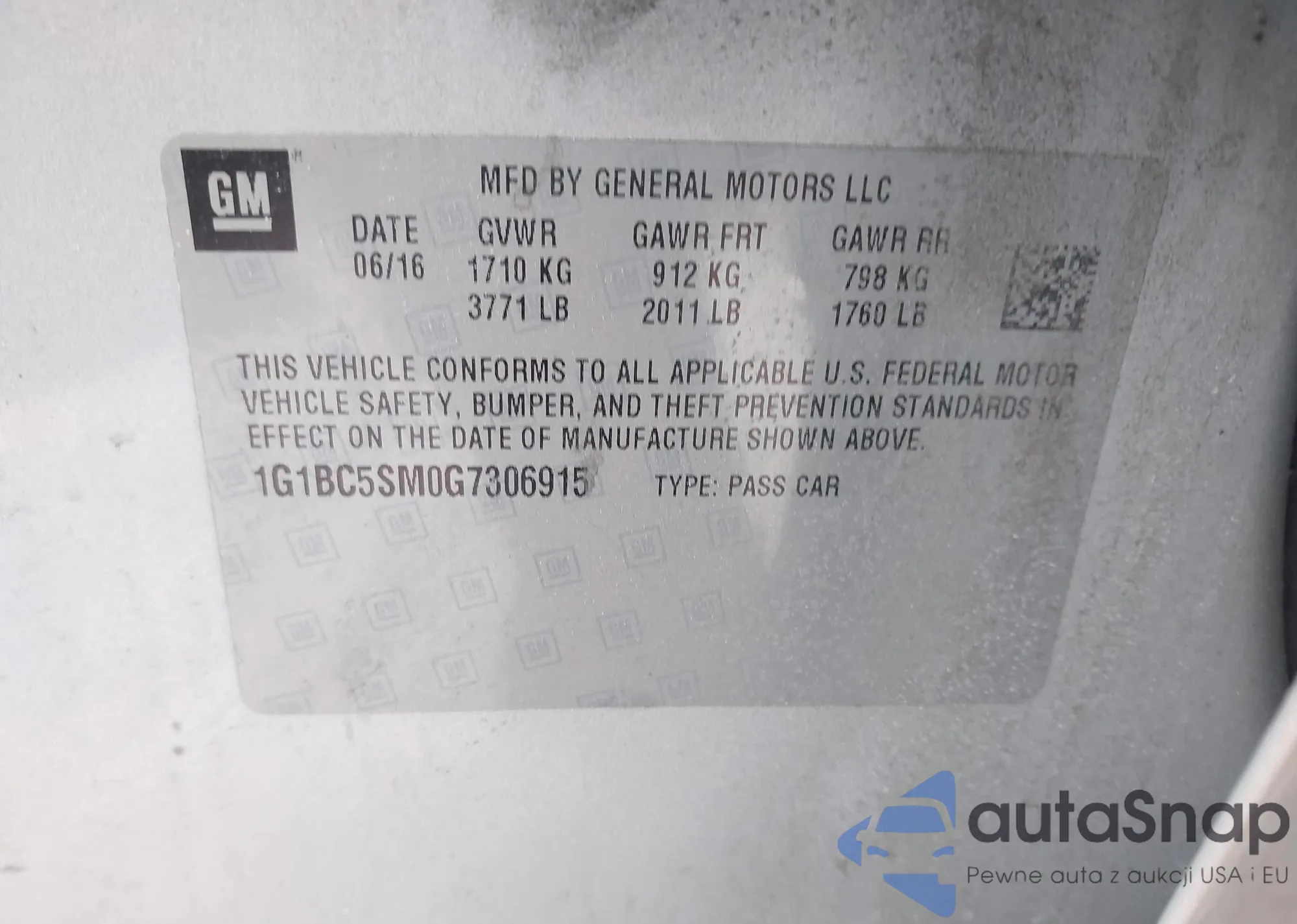 Samochód Chevrolet Cruze 2016 (VIN 1G1BC5SM0G7306915) nie był wcześniej licytowany. Dokumenty są czyste, przebieg odpowiada lub jest niższy niż średnia rynku. Sprzedaje go firma ubezpieczeniowa – polecamy zakup. Dostawa do portu zajmie ok. 6–8 tygodni.