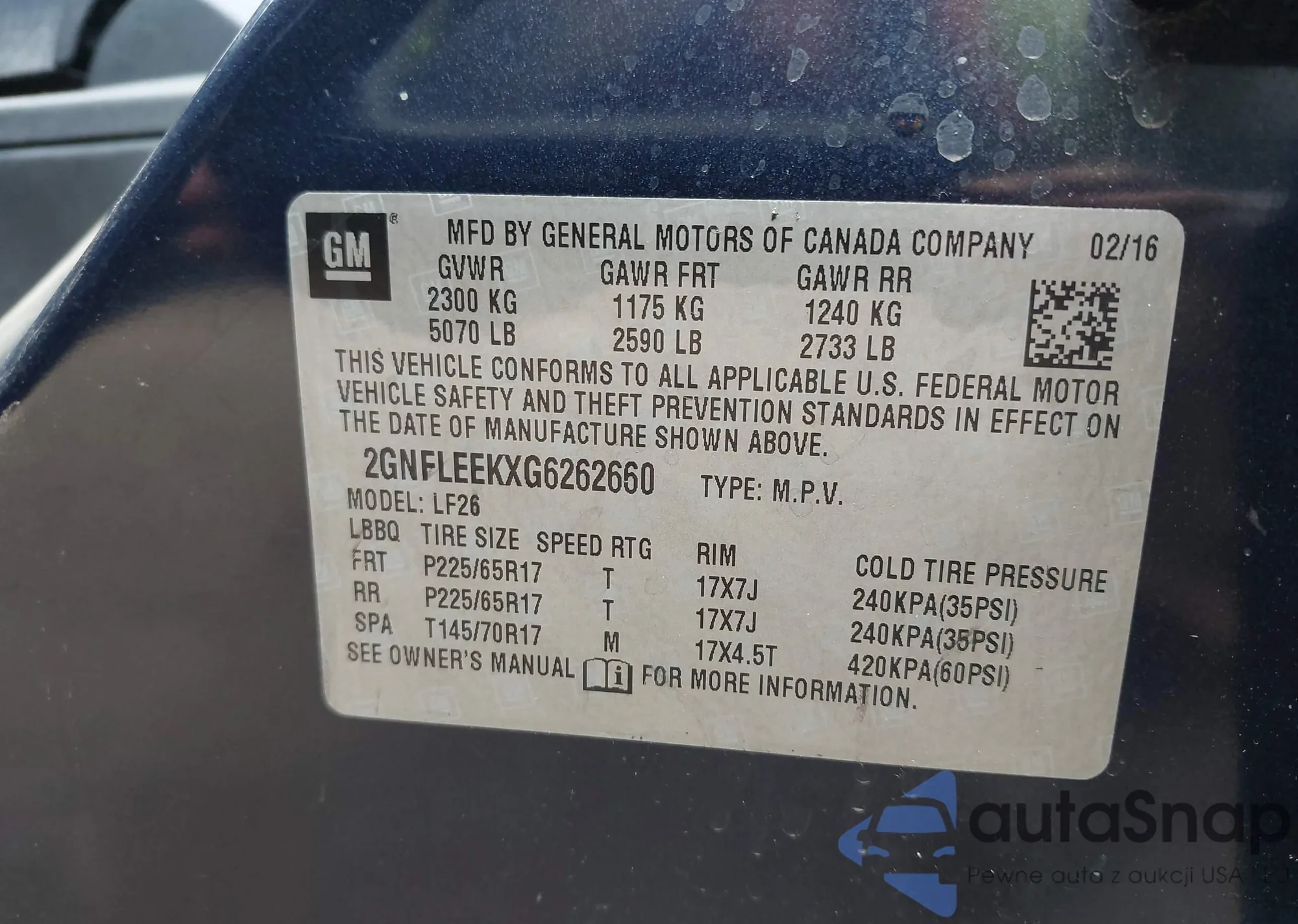 VIN: 2GNFLEEKXG6262660