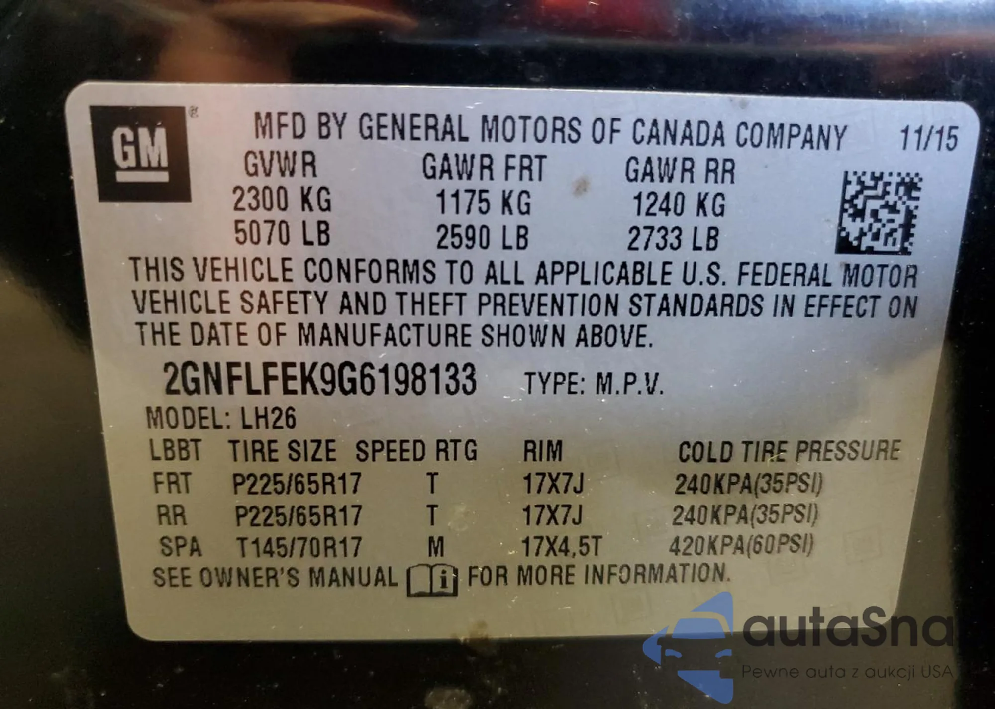 Samochód Chevrolet Equinox 2016 (VIN 2GNFLFEK9G6198133) był już licytowany 0 razy lub sprzedaje go niezweryfikowany sprzedawca. Zalecamy raport Carfax i potwierdzenie możliwości rejestracji pojazdu przed zakupem.
