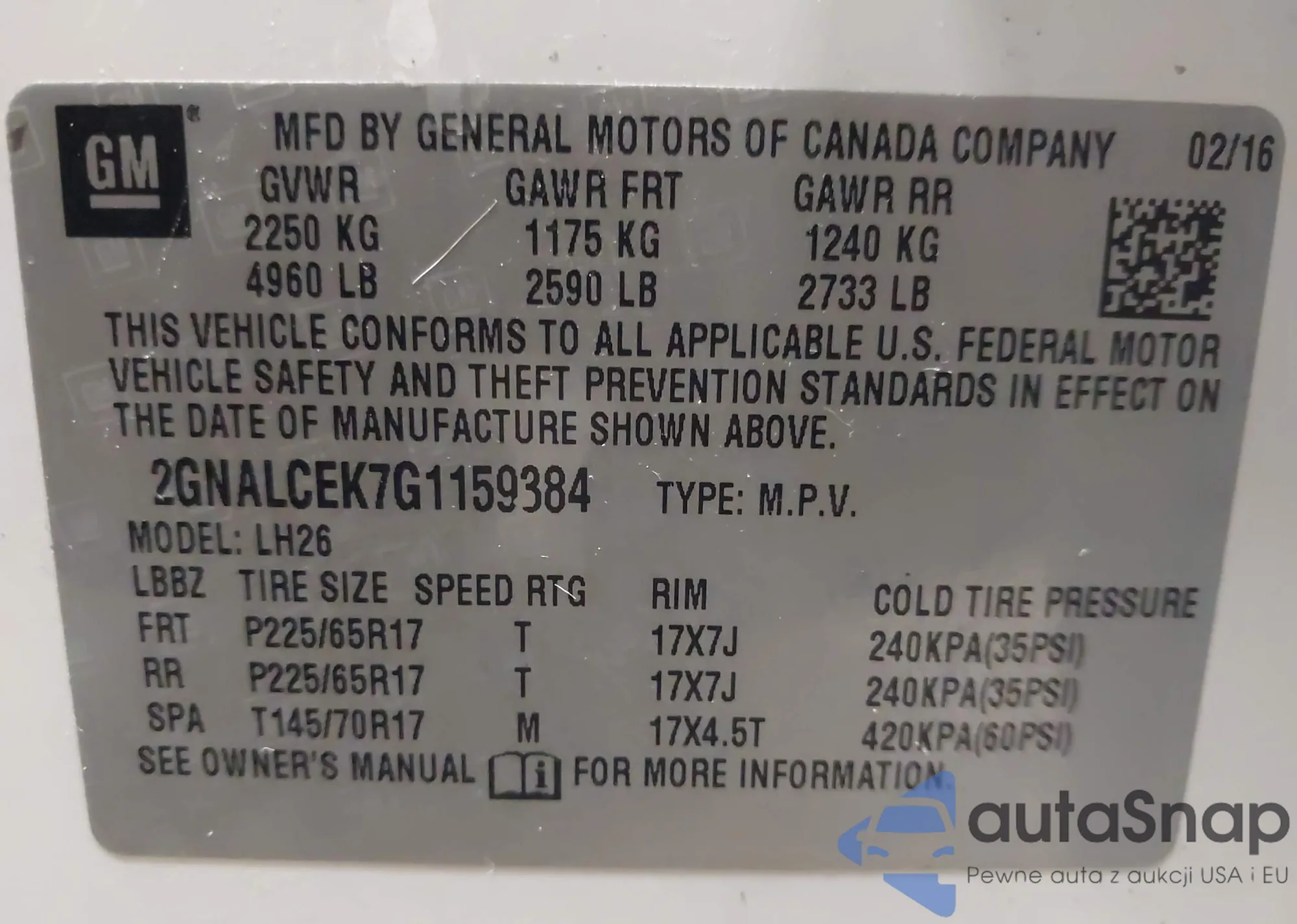 VIN: 2GNALCEK7G1159384