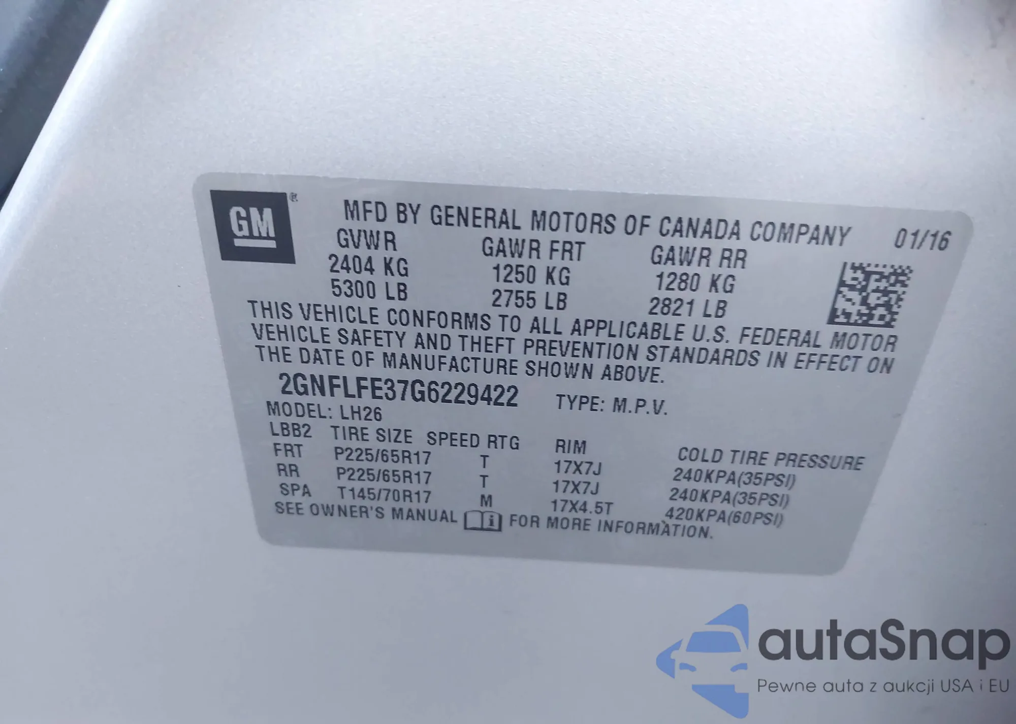 VIN: 2GNFLFE37G6229422