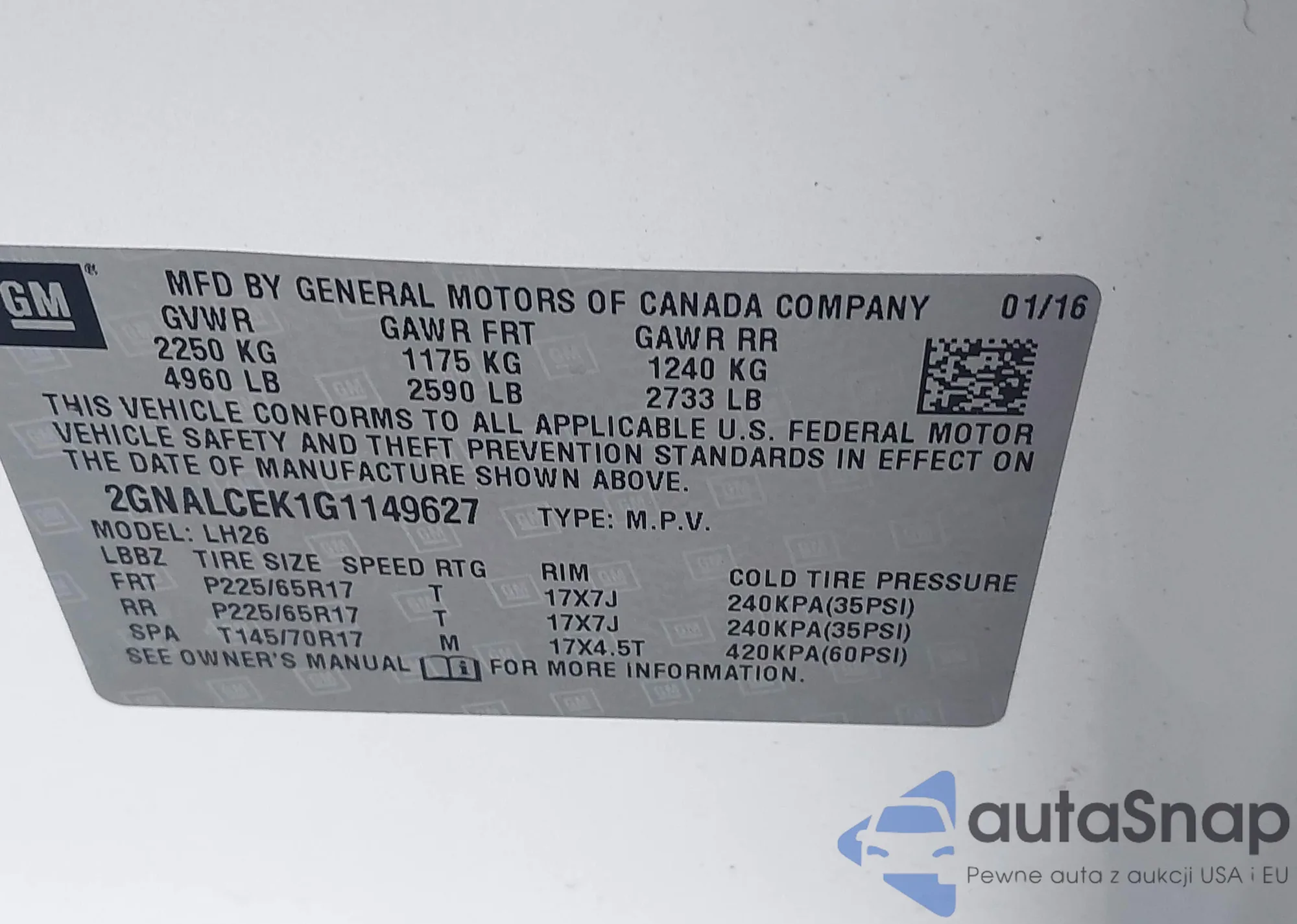 VIN: 2GNALCEK1G1149627