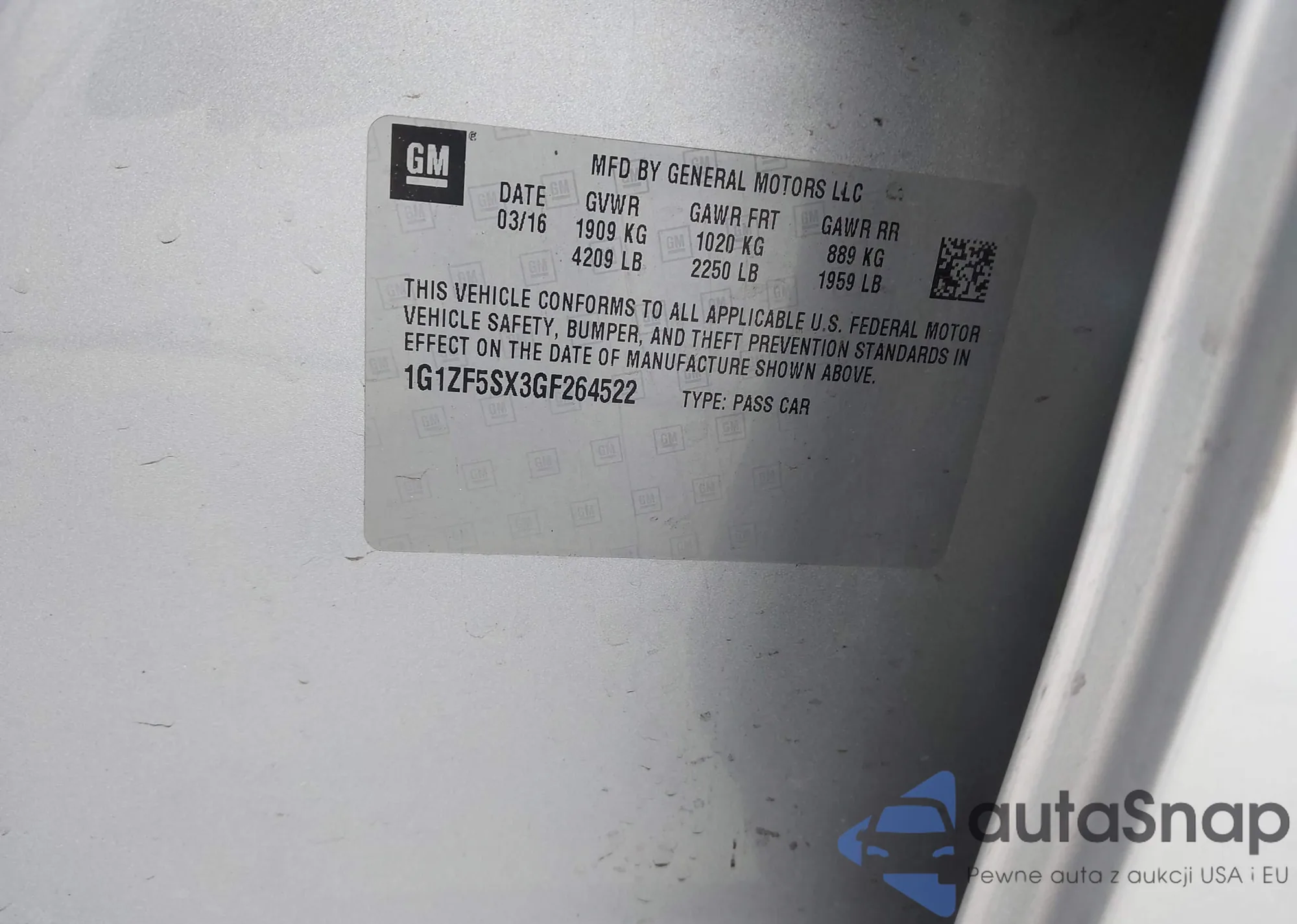 VIN: 1G1ZF5SX3GF264522