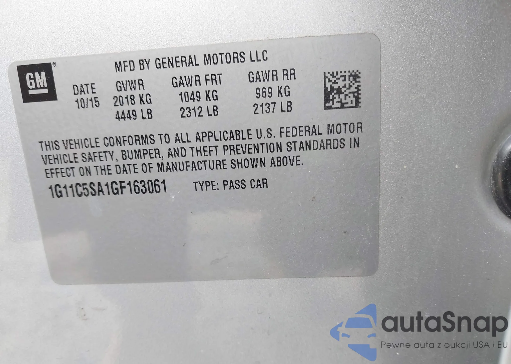 • VIN: 1G11C5SA1GF163061
