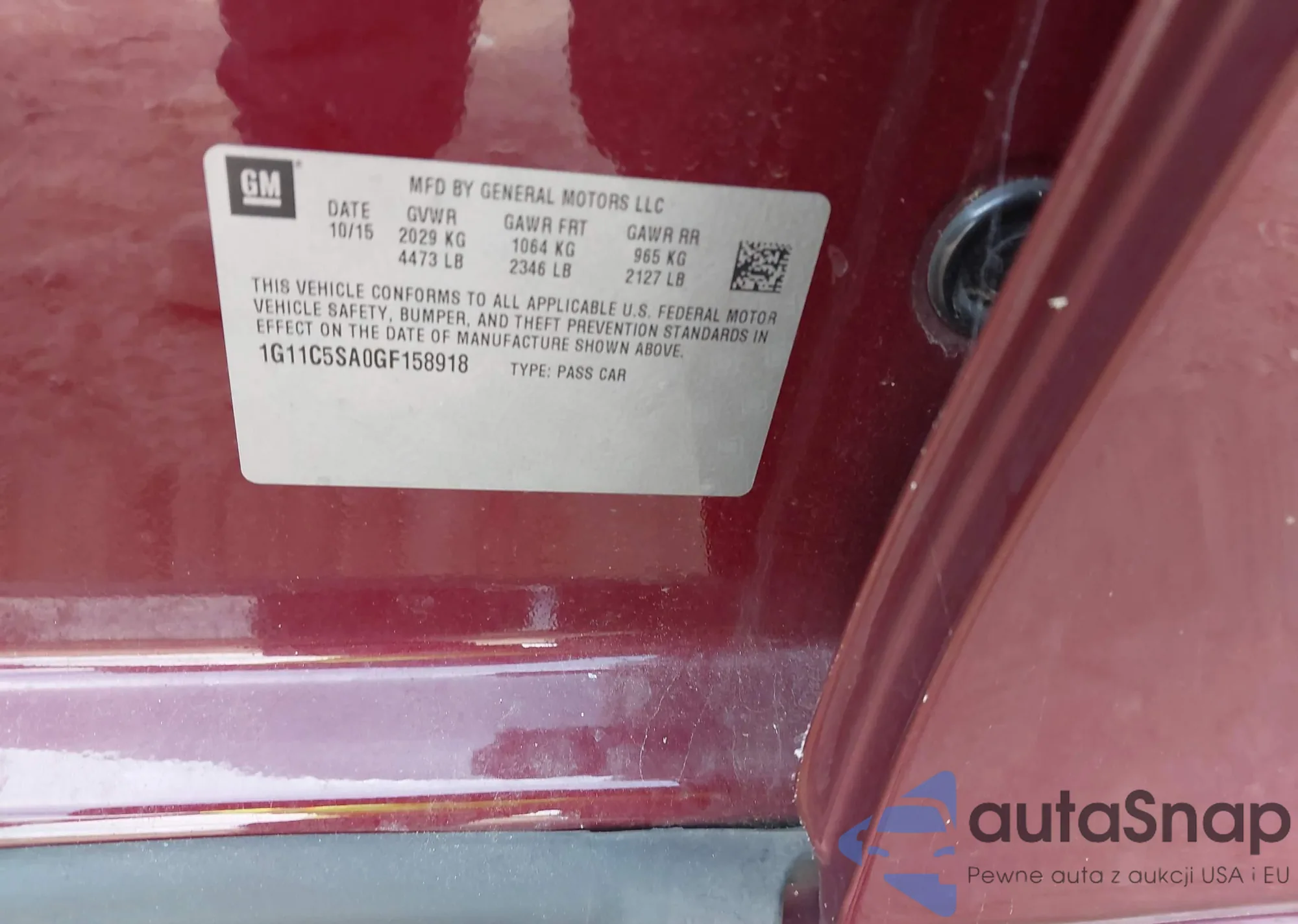 VIN: 1G11C5SA0GF158918