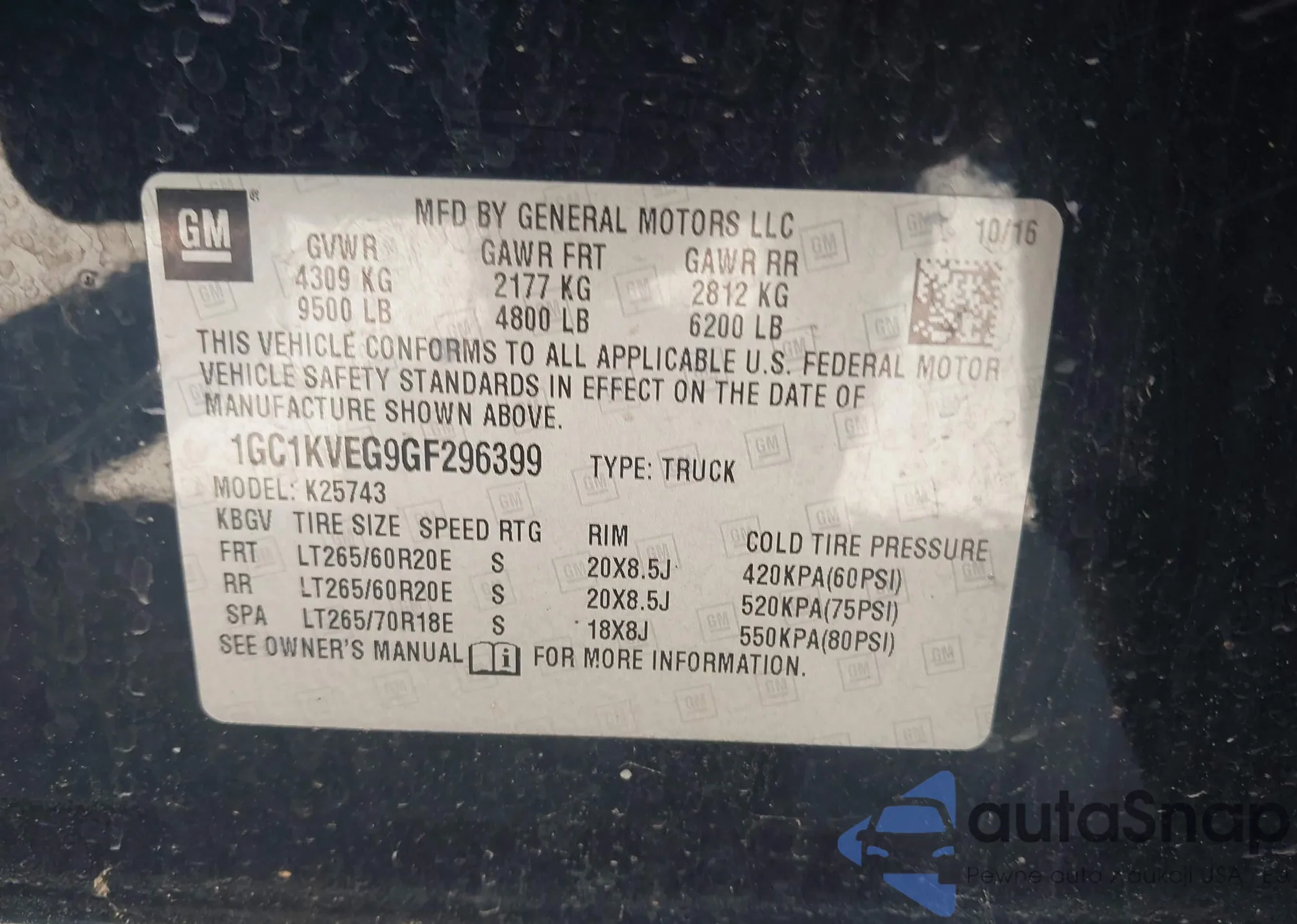 VIN: 1GC1KVEG9GF296399