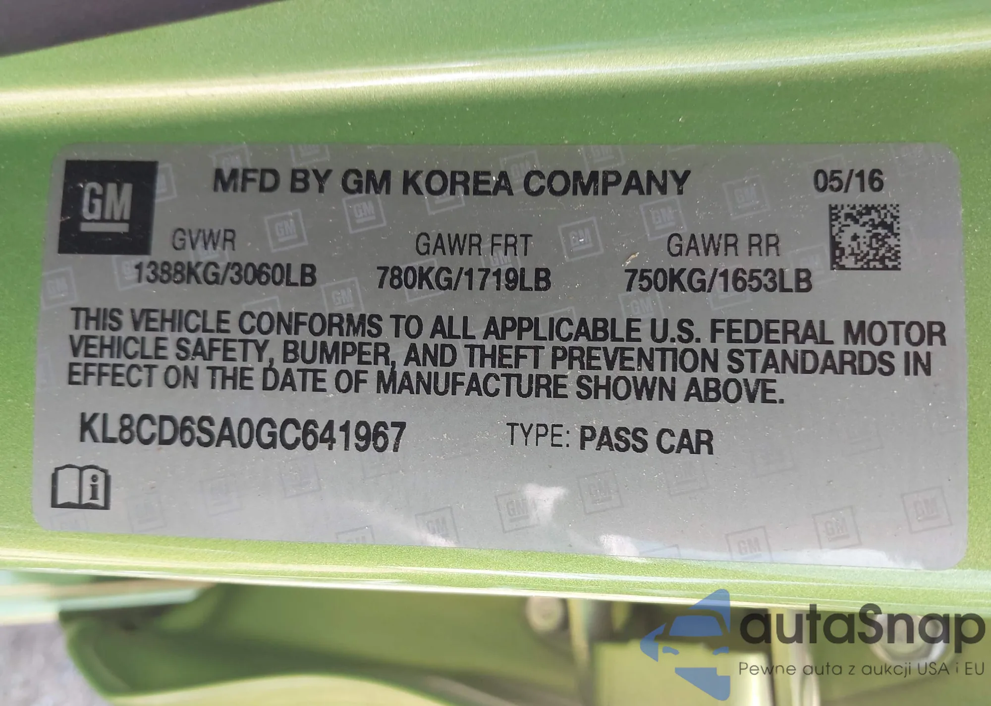 • VIN: KL8CD6SA0GC641967