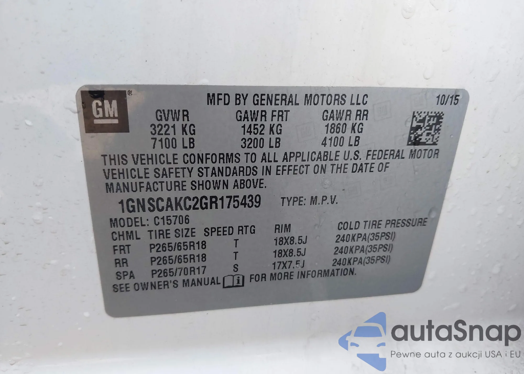 Samochód Chevrolet Tahoe 2016 (VIN 1GNSCAKC2GR175439) nie był wcześniej licytowany. Dokumenty są czyste, przebieg odpowiada lub jest niższy niż średnia rynku. Sprzedaje go firma ubezpieczeniowa – polecamy zakup. Dostawa do portu zajmie ok. 6–8 tygodni.