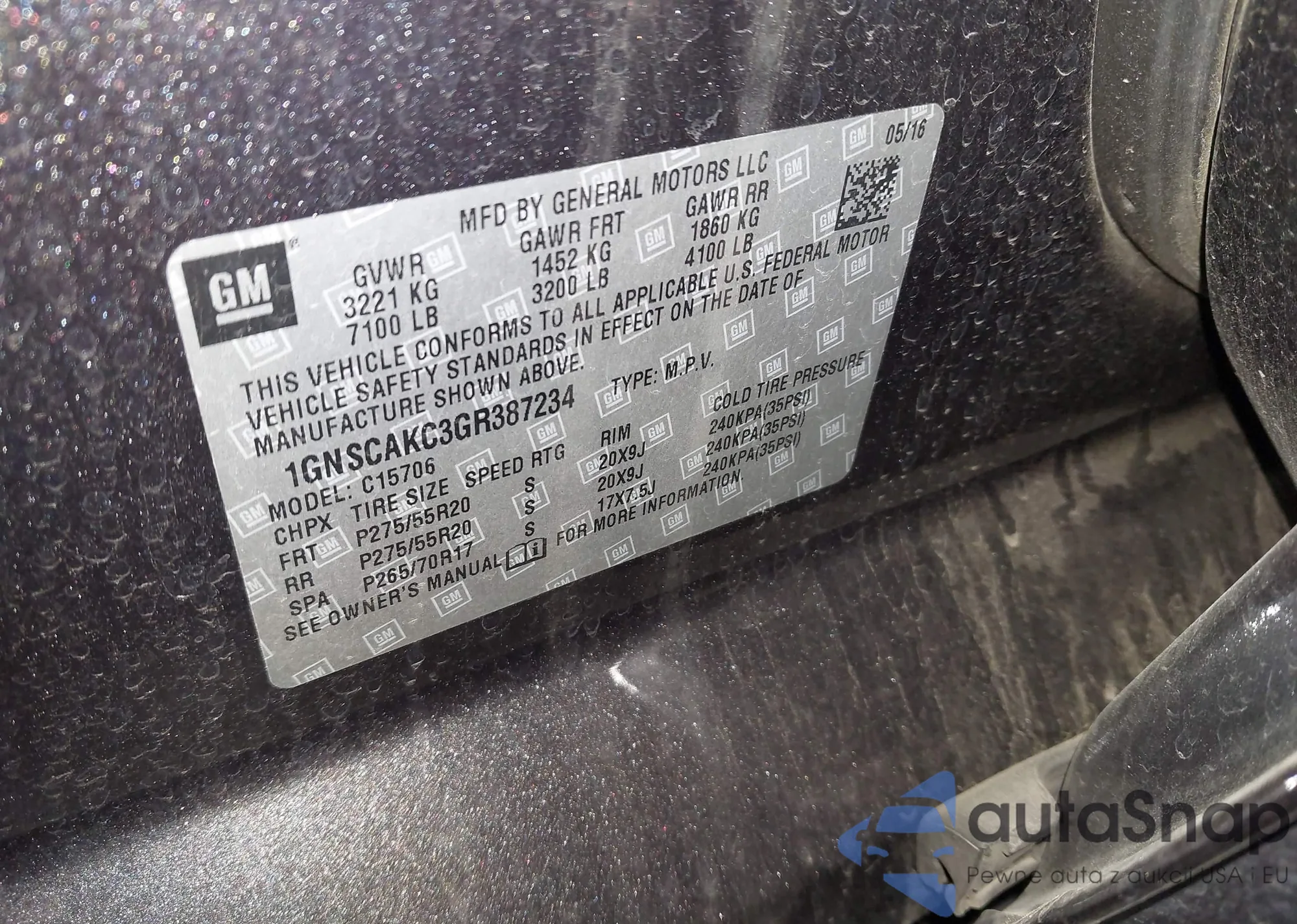 Marka: 2016 Chevrolet Tahoe ...