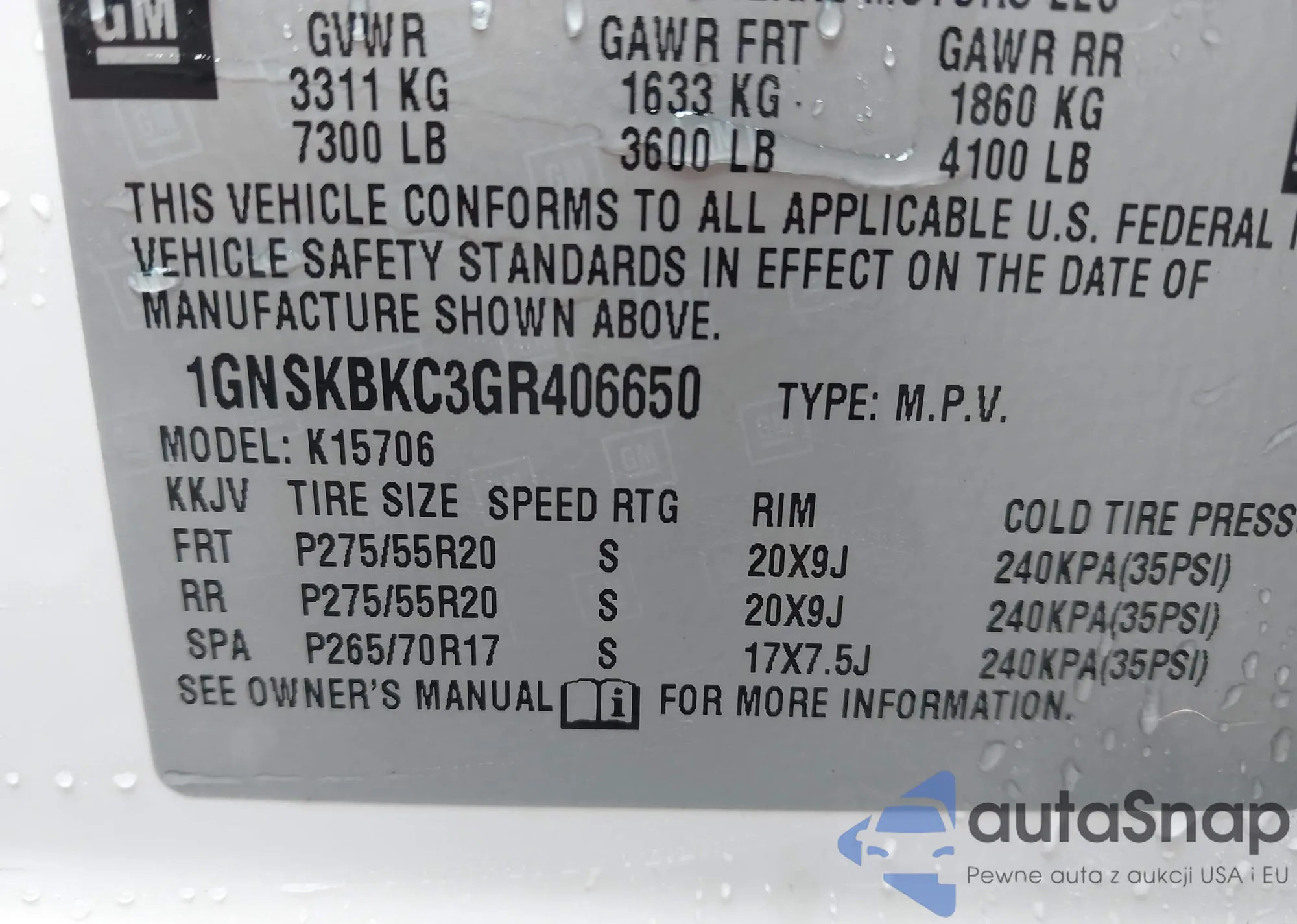 VIN: 1GNSKBKC3GR406650