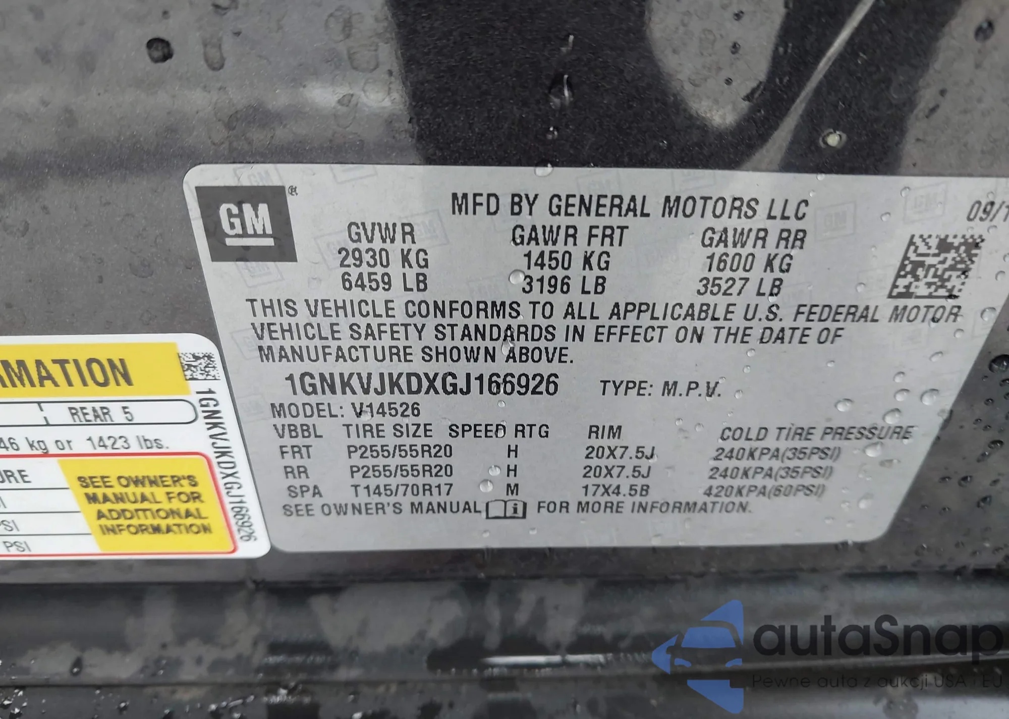 VIN: 1GNKVJKDXGJ166926
