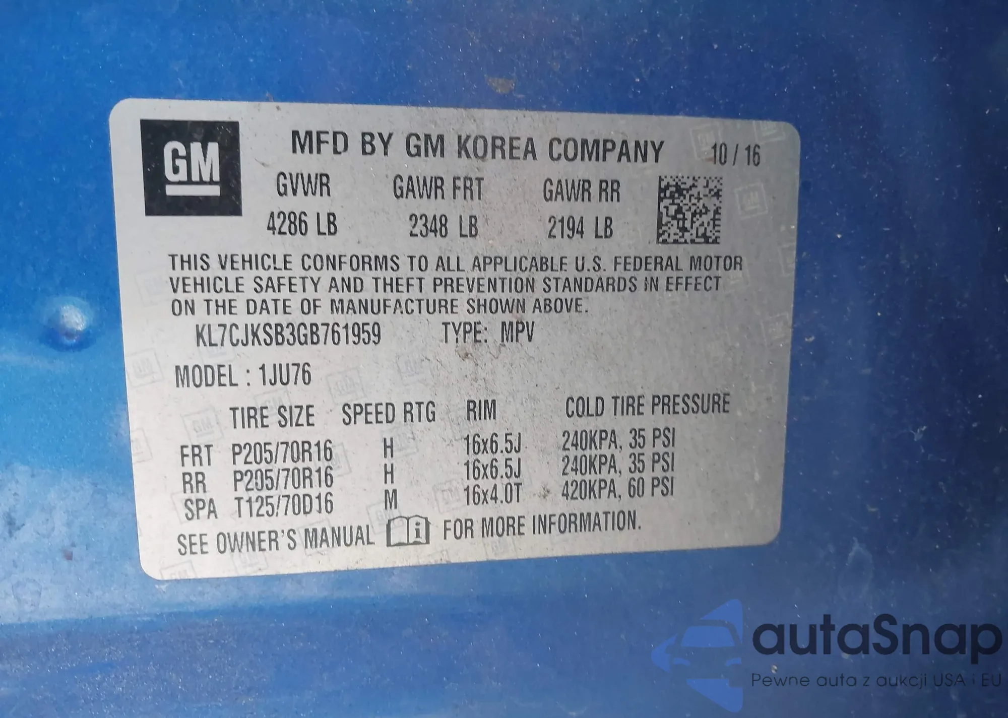 VIN: KL7CJKSB3GB761959
