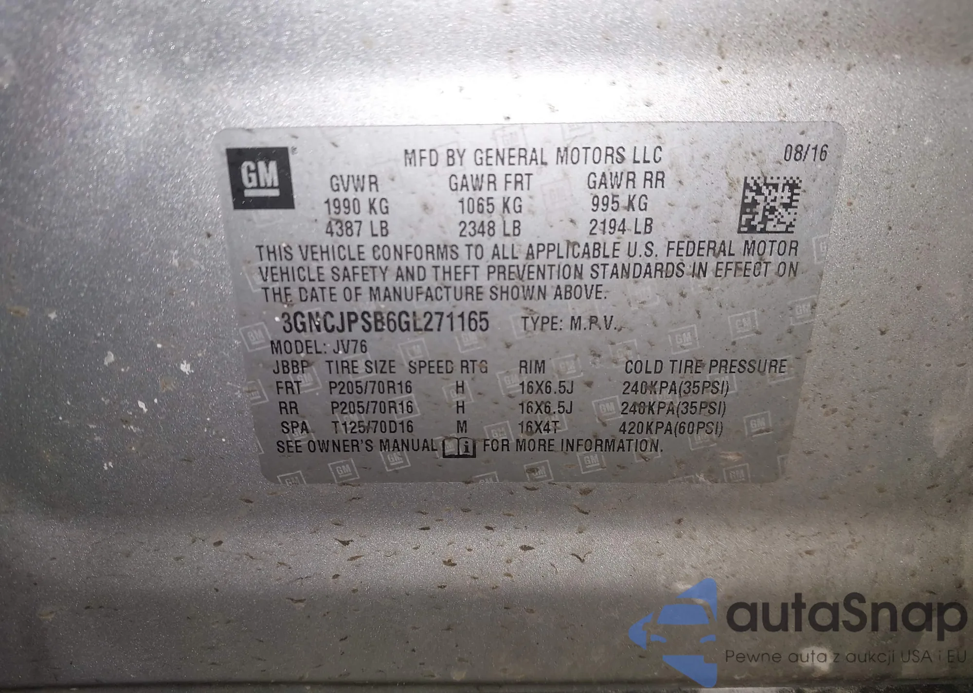 VIN: 3GNCJPSB6GL271165