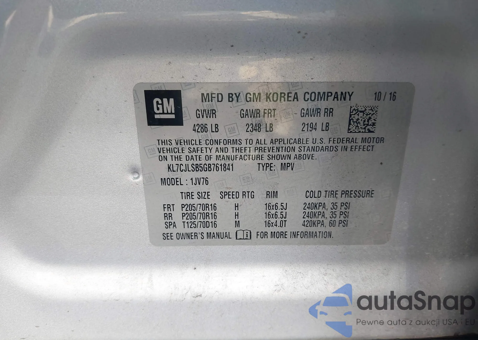 VIN: KL7CJLSB5GB761841