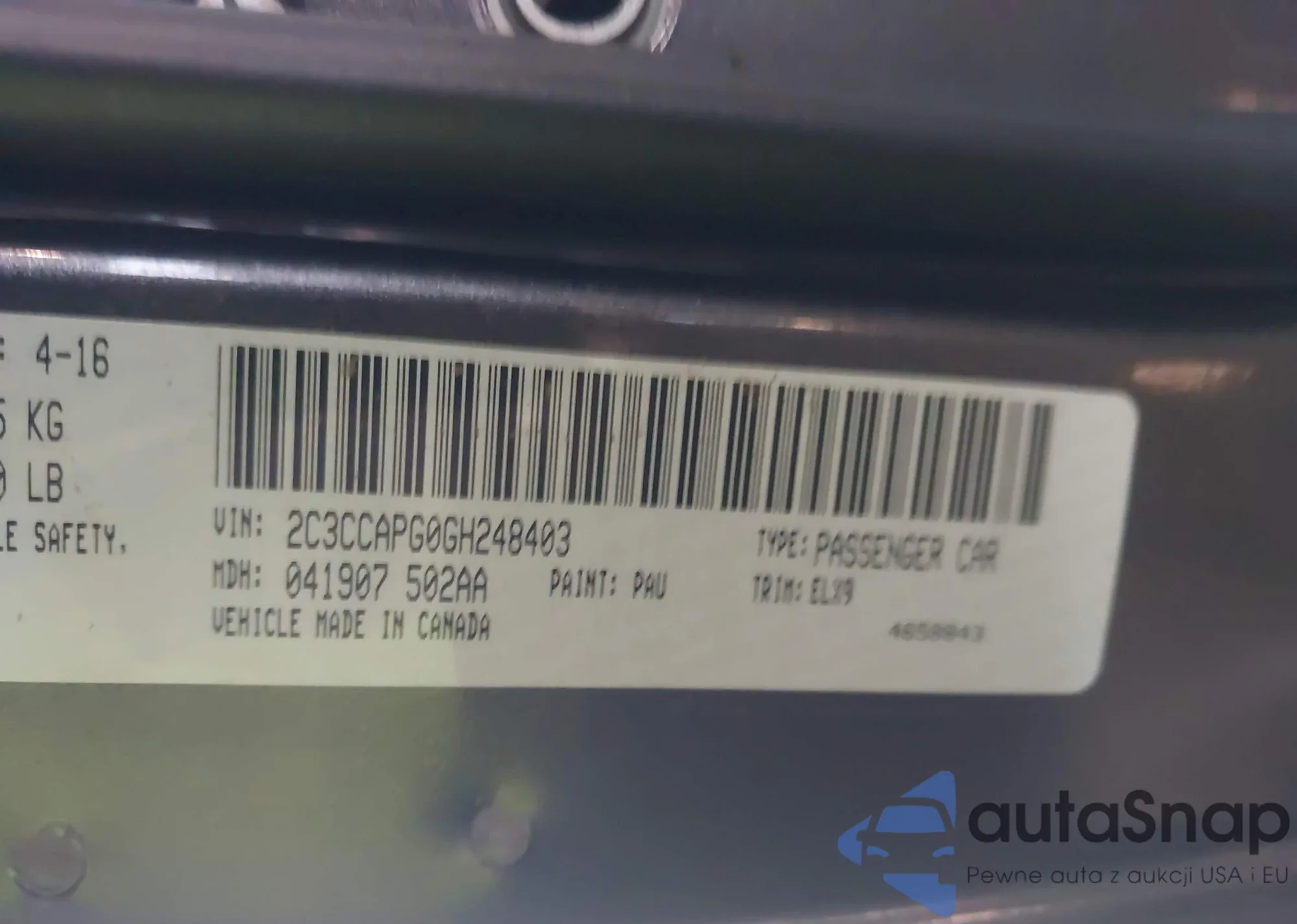 • VIN: 2C3CCAPG0GH248403